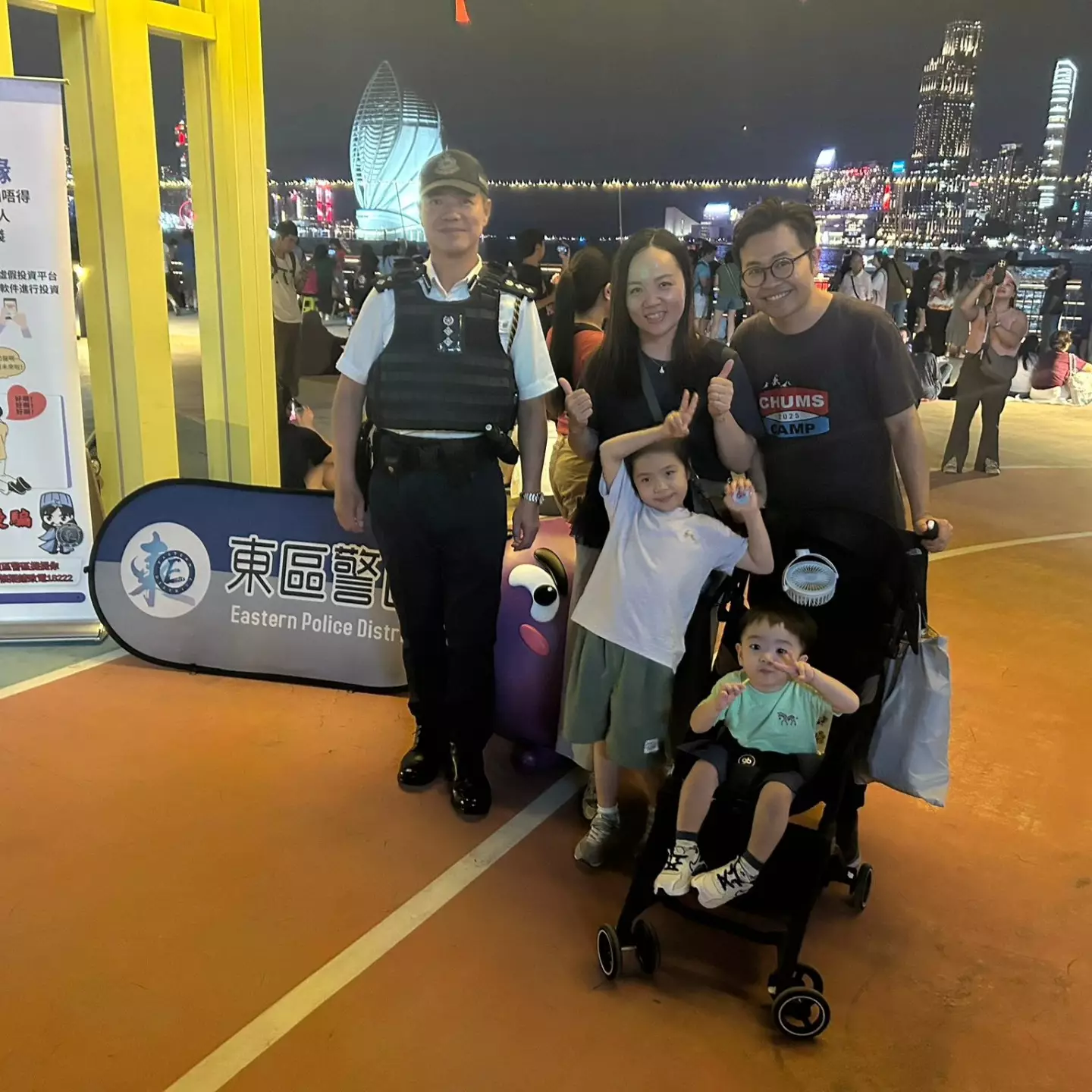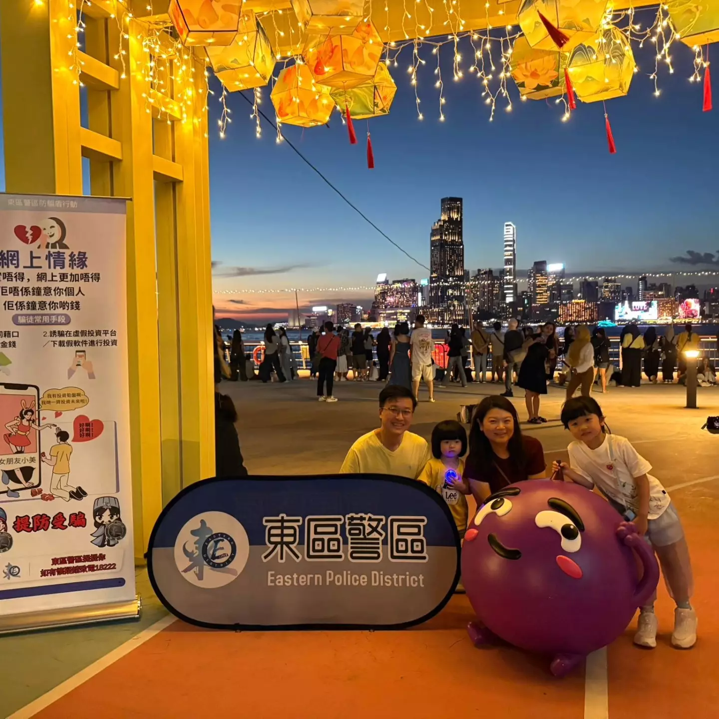 十月一日國慶日,東區警區警民關係組人員帶同防騙吉祥物「提子」,前往東岸公園向市民派發限量版熊貓及提子造型閃燈扣與貼紙,與民眾共同慶祝中華人民共和國成立七十六周年。 活動吸引眾多市民參與,現場氣氛熱鬧。透過派發防騙主題紀念品,警方向市民推廣防騙信息,提醒大眾保持警覺,防範各種詐騙手法。 這類社區活動促進警民互動,加強市民對防罪工作的認識。在節慶歡樂氣氛中,警方以輕鬆方式傳遞重要防騙知識,提升公眾安全意識。