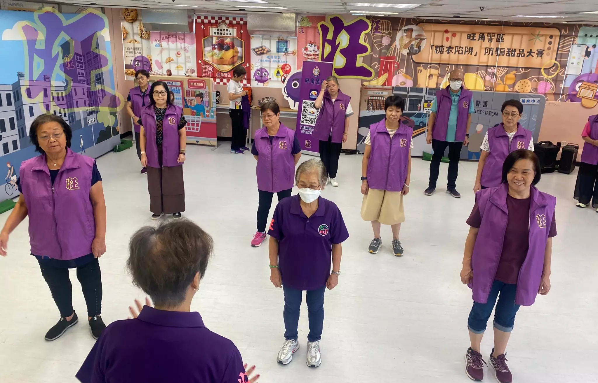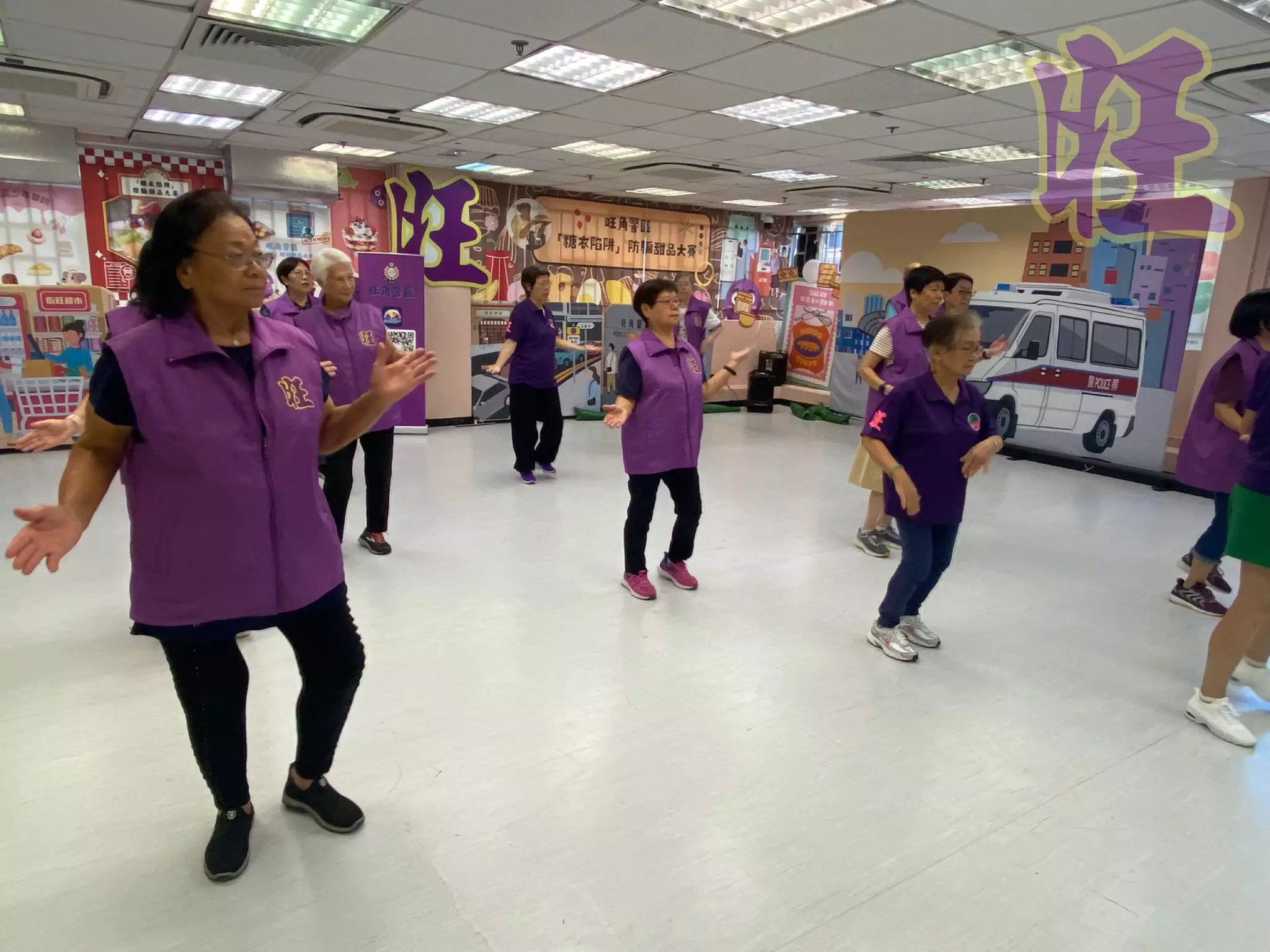10月8日,會所突然變身成「小型舞池」! 耆樂警訊隊長少燕姐親自落場教導一班從未接觸過跳舞的「老友記」,把他們帶進 32步輕快旋律中。由左踏、右點、轉圈及拍手開始,大家由生硬到合拍,只花了大半小時就齊齊整整 32 步0甩拍! 現場播放著懷舊流行曲 ,長者們笑到見牙不見眼 。少燕姐說:「舞步不難,難在第一步勇氣 ;大家都跨過了,旺角區的老友記就是後生仔!