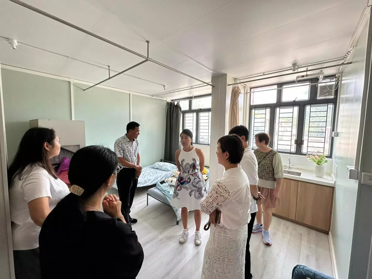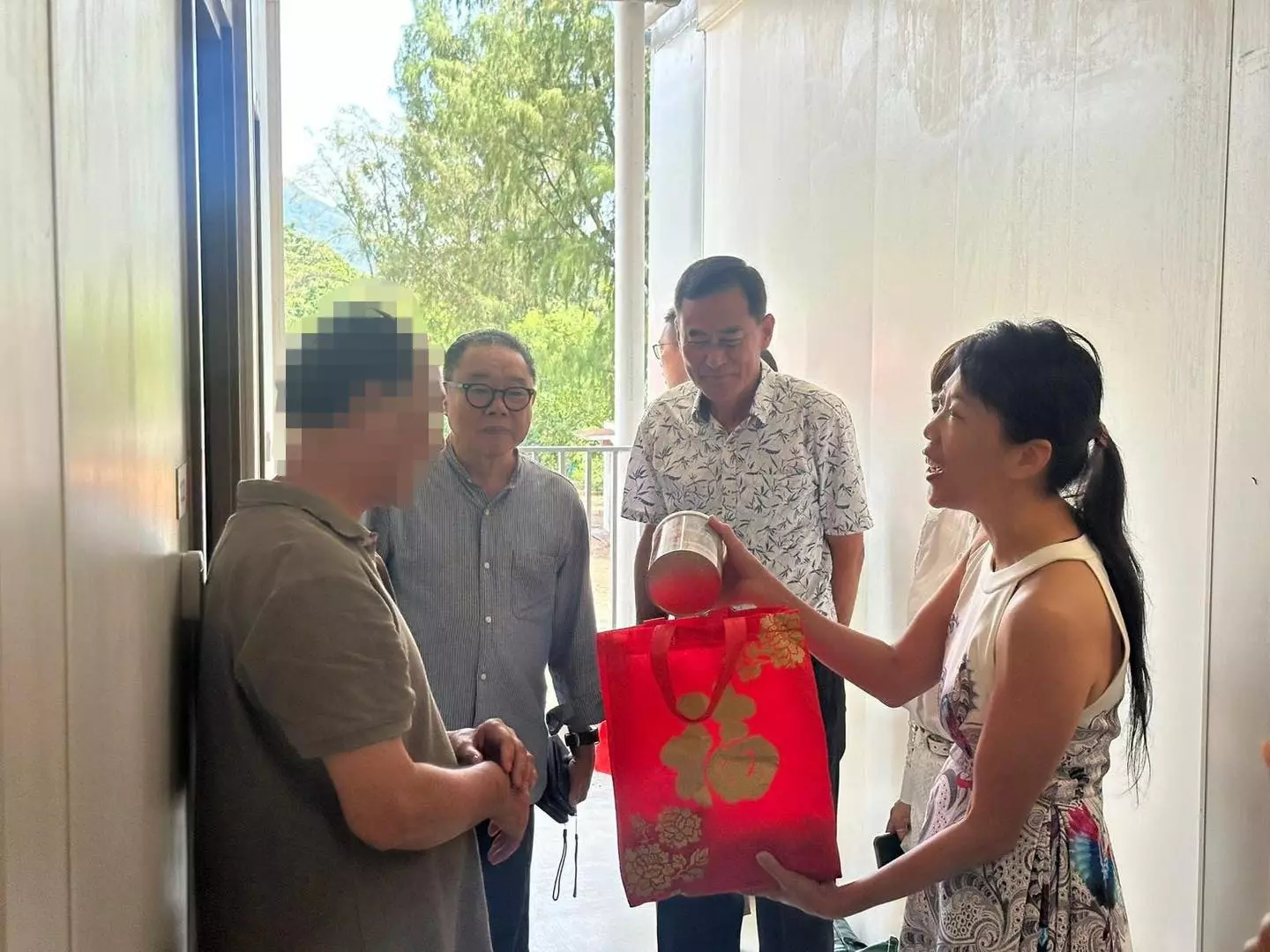 近日,大埔民政專員同大埔區議員、大埔北分區委員會同關愛隊喺善導會總幹事李淑慧陪同下參觀咗由善導會營運,於本年1月開始入伙,位於大埔船灣陳屋嘅過渡性房屋項目「善樓」。 大埔區議會、分區會同關愛隊透過今次探訪了解「善樓」嘅居民情況、日常生活設施、交通配套及居住環境等需要;區議員同分區會委員積極協助加強小巴 及公共交通工具班次及站點 ,以方便「善樓」居民。 專員更即場安排關愛隊到「善樓」提供義診 以及為有需要家庭提供家居維修服務 ,發揮關愛及聯繫社區嘅精神! 大家又到訪「善樓」為居民而設嘅「賽馬會生態蝴蝶園」 及「社區園圃」;亦探訪咗「善樓」嘅居民,大埔民政處亦準備咗福袋 派畀住戶送上祝福。