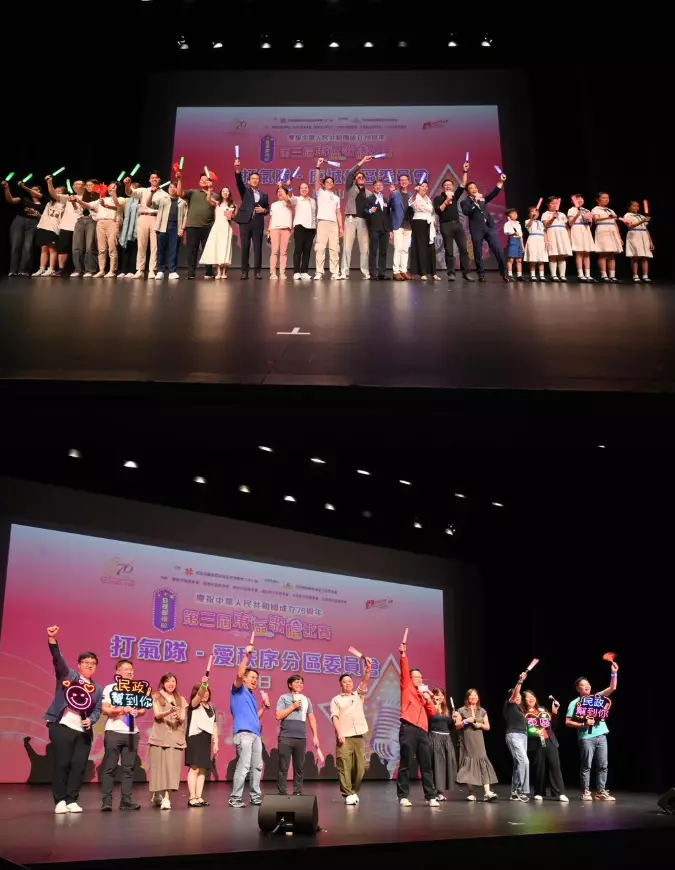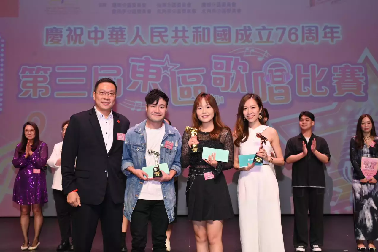 由東區民政處、東區區議會及東區六個分區委員會攜手舉辦嘅「慶祝中華人民共和國成立76周年 第三屆東區歌唱比賽」,星期日(12/10)喺柴灣青年廣場Y綜藝館圓滿舉行。嘉賓、評判團、打氣隊與觀眾逾500人出席,齊賀國慶,共聽好歌。東區民政專員兼區議會主席黎旨軒、中聯辦港島工作部副處長羅文臻、東區區議會提振地區經濟專責工作小組主席林心亷,連同一眾地區領袖𦲷臨主禮。
