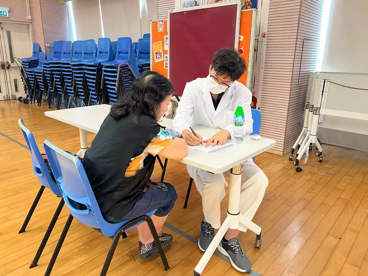 講座結束後,義診環節隨即展開。物理治療師為有需要的居民提供免費一對一諮詢,就痛症病史、查看活動幅度、觸診痛點等進行初步評估,再根據個人情況提出建議,支援居民健康。