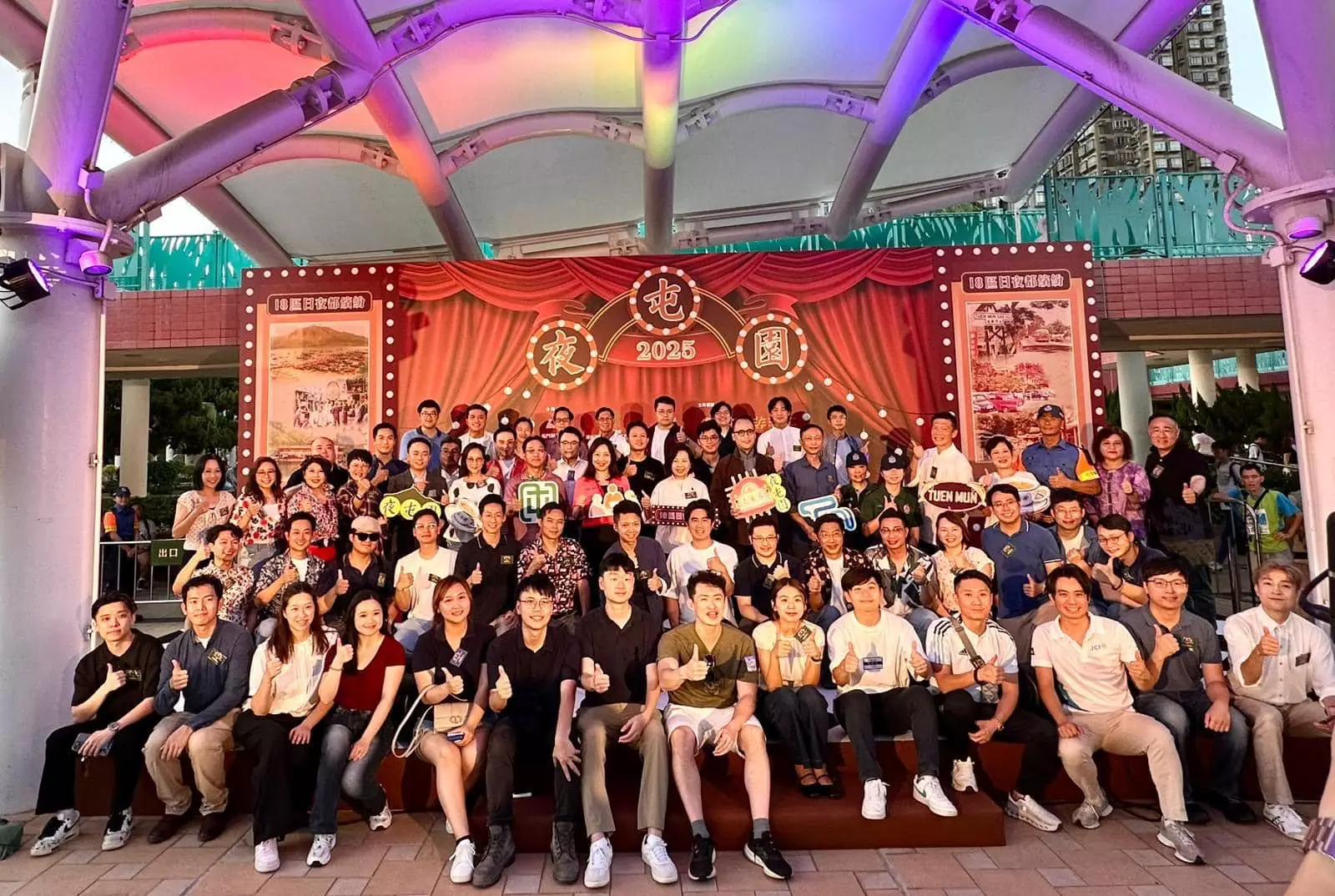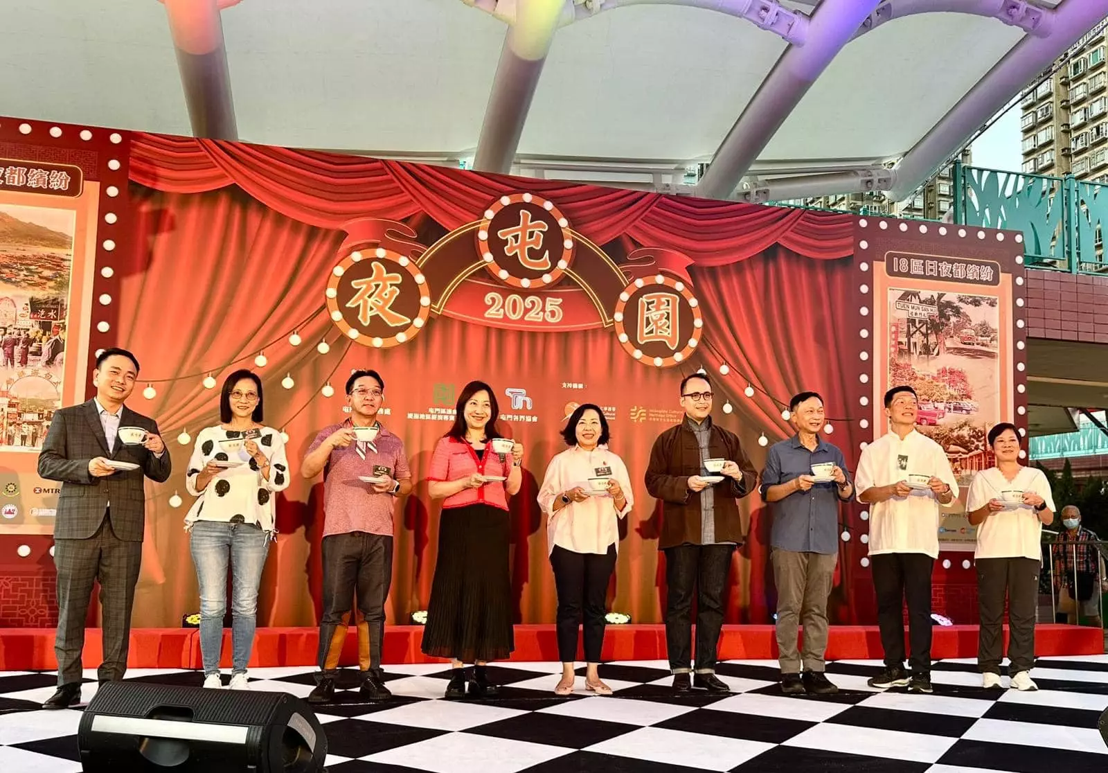 夜屯園獲得民政及青年事務局局長麥美娟、民政總署署長杜潔麗、屯門民政專員關可臨、屯門區議會提振地區經濟專責工作小組主席劉業強、屯門各界協會主席雲天壯、康文署非物質文化遺產辦事處總監吳雪君、屯門警區指揮官馬偉卿、中聯辦新界工作部副處長劉景峰、屯門區康樂事務經理雷靄儀到場主禮及支持 。局長致辭時特別提到,超過60名青年義工喺夜屯園現場提供協助,對於一班充滿活力有幹勁嘅年輕人參與地區工作深受鼓舞 。