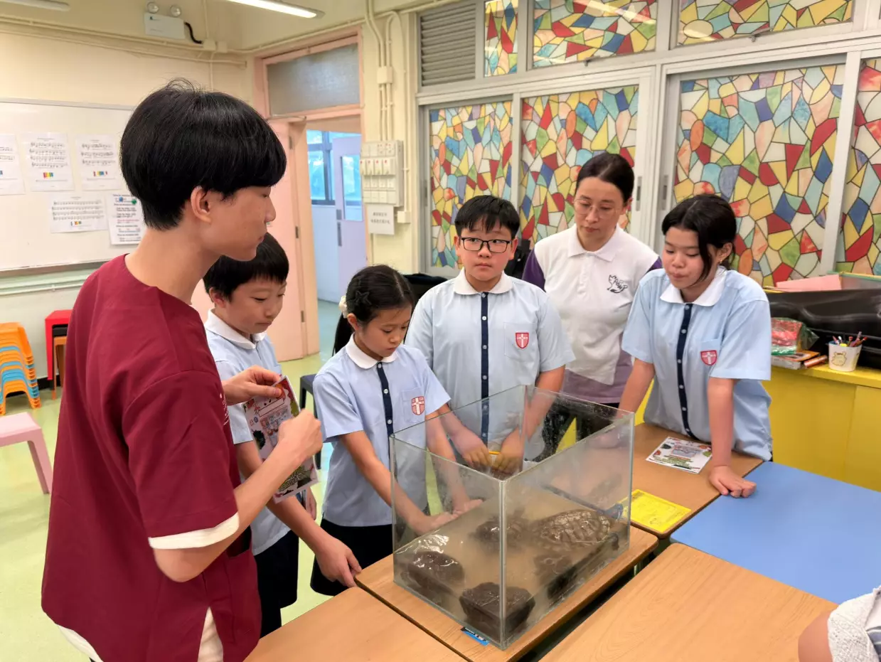 昨日(14/10),港島總區「動物守護•社區大使」計劃人員聯同城市大學動物守護學長計劃成員,到中區天主教總堂區學校探訪「寵愛閣」。 活動中,由學生大使介紹寵愛閣的運作,親手展示寵物如倉鼠和烏龜,並帶領參觀校内大型水族箱中的熱帶魚等。城大學長亦為寵物進行健康檢查,分享照顧動物的知識與心得,並提供有利寵物進一步成長的優化選項。大使們在寵愛閣中學習到養護動物的知識,和動物相處的愛心和珍惜生命。 「動物守護•社區大使計劃」會繼續支援每間「寵愛閣」學校的發展,將生命影響生命的光照耀孩子們每張可愛的臉。
