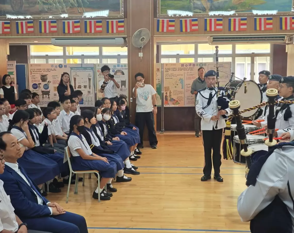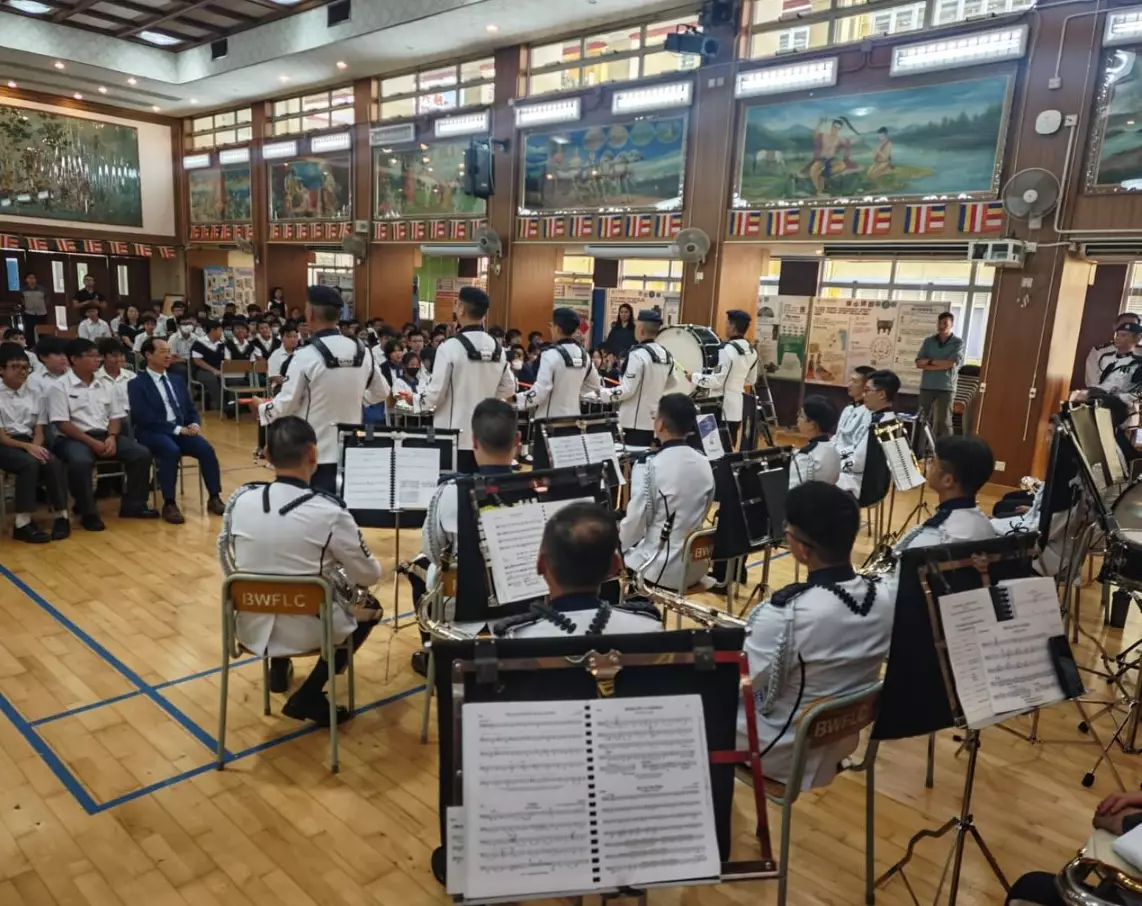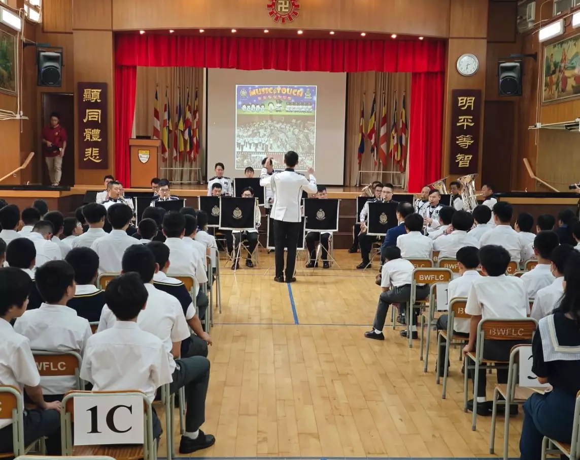 昨日(10月16日),警察樂隊透過 MUSIC TOUCH 「樂韻警聲亮校園」外展計劃,與灣仔警區警民關係組合作,到訪佛教黃鳳翎中學,為200多名師生傾力演出一首又一首優美嘅樂曲。 此外,為咗提升學生對學習音樂嘅興趣,警察樂隊亦透過互動形式嘅問答環節同學生交流,藉此介紹義勇軍進行曲怎樣成為中國國歌,以及警察樂隊嘅背景同發展歷史。 灣仔警區期望透過「樂韻警聲亮校園」外展計劃,協助青少年培養正面價值觀,同埋加深佢地對唔同類型音樂嘅了解,致力推動學童「全人發展」。
