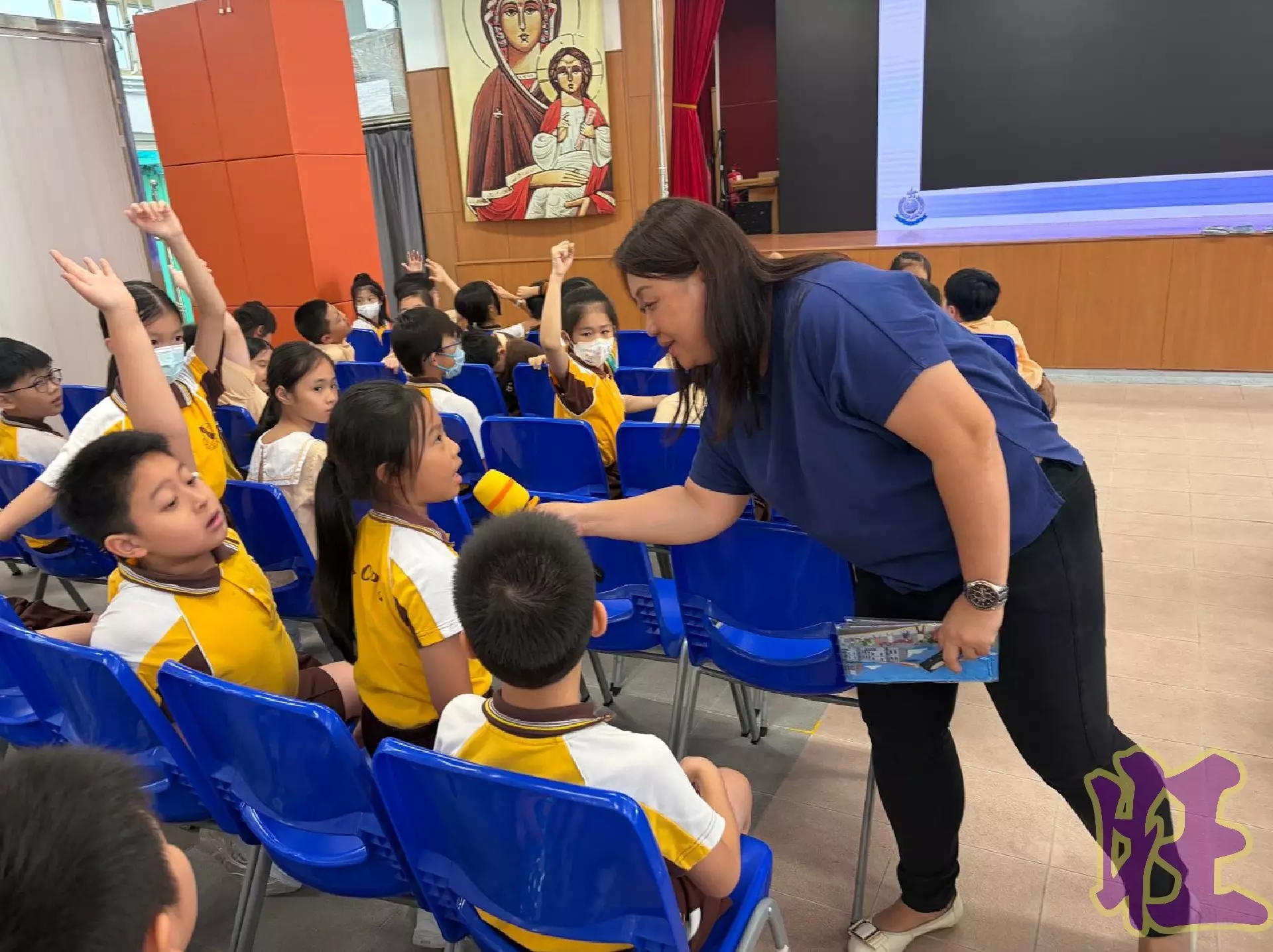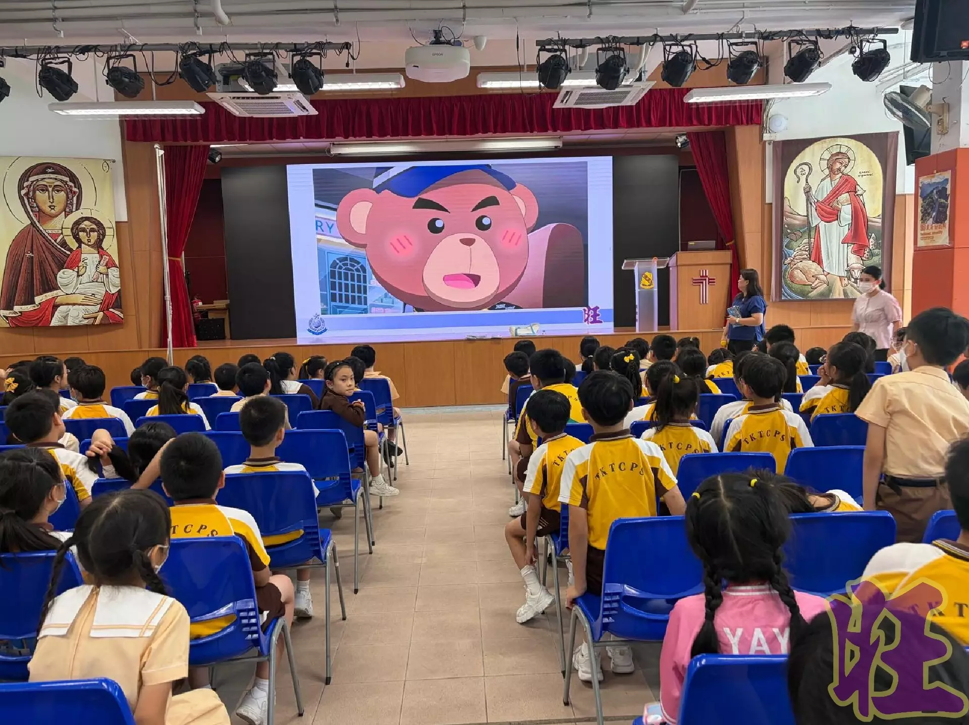 旺角警區警民關係組學校聯絡主任姜警長再度蒞臨 *大角嘴天主教小學* ,為全校三至六年級共390位學生,帶來一場生動而深刻的「守法意識」講座。是次活動聚焦於青少年常見的店舖盜竊行為,更特別針對新興的「夾公仔機」相關盜竊手法,進行深入淺出的防罪宣導,從根源強化同學的法治觀念,讓大家清楚明白店舖盜竊所帶來的刑事後果。