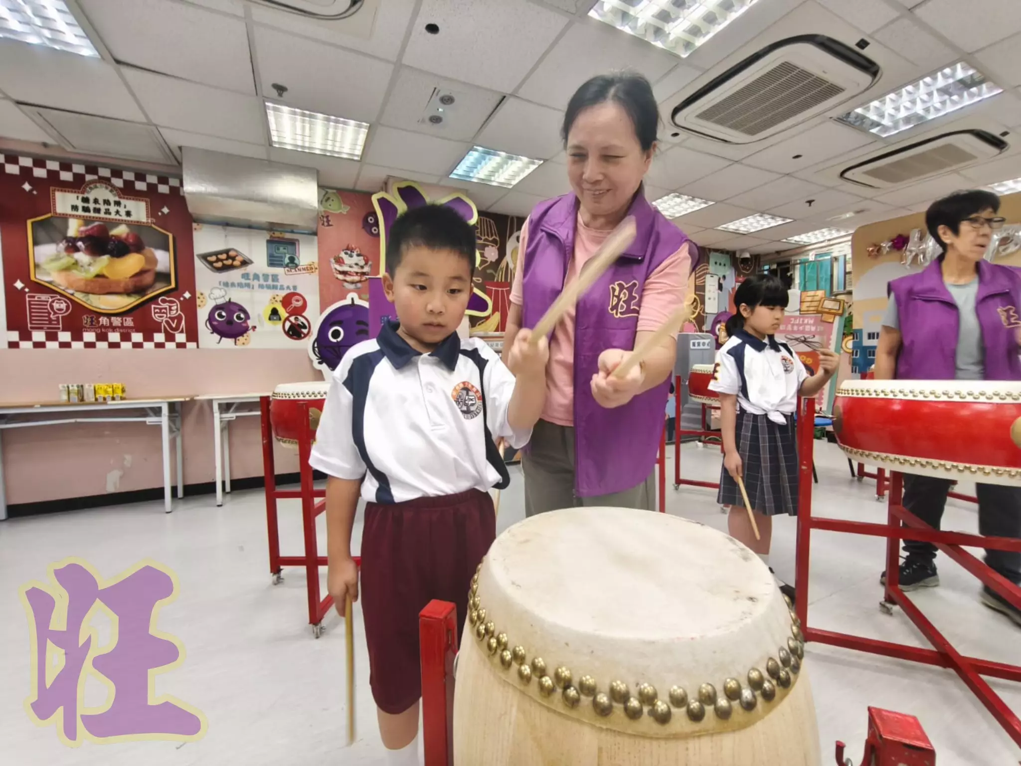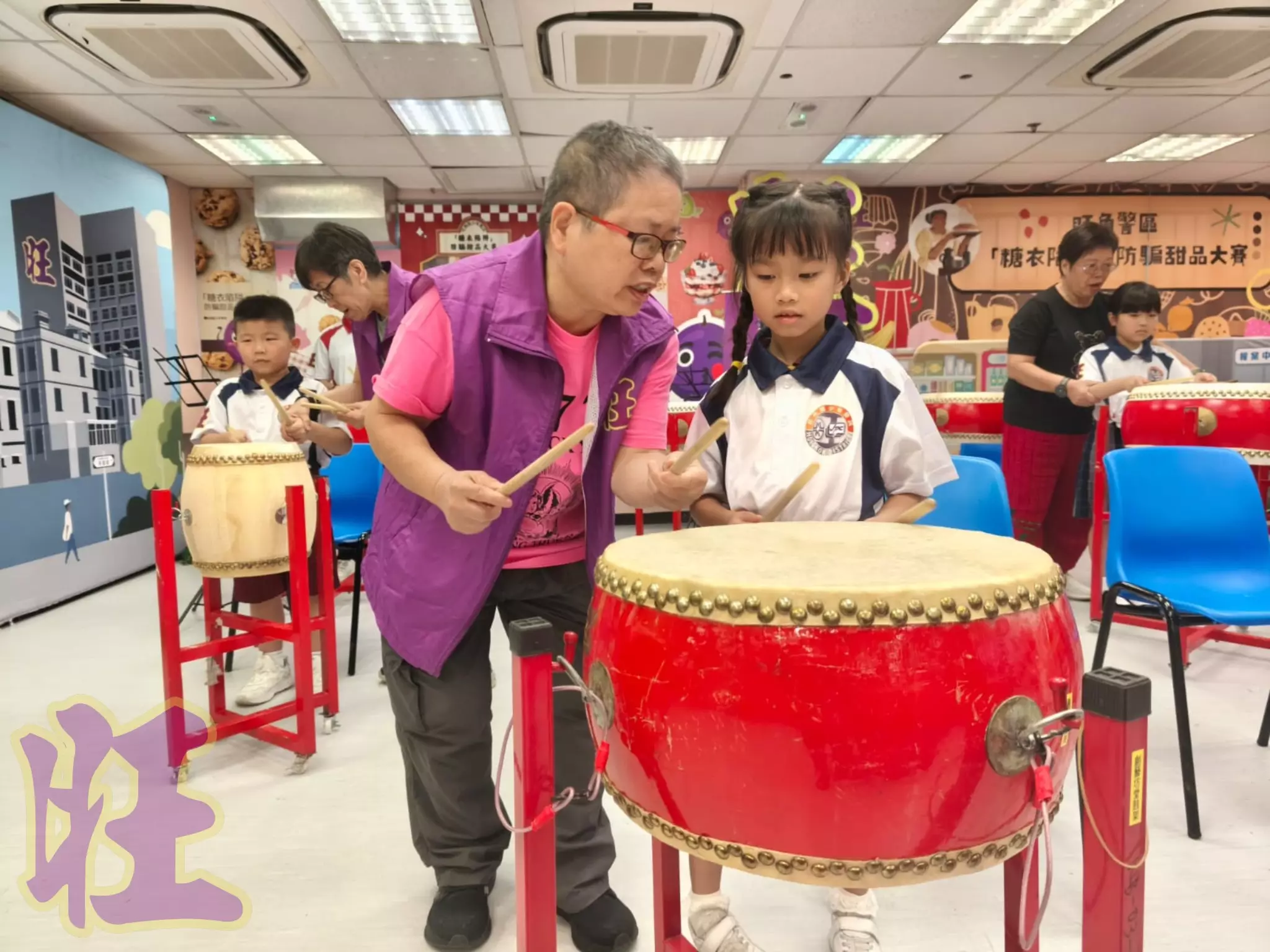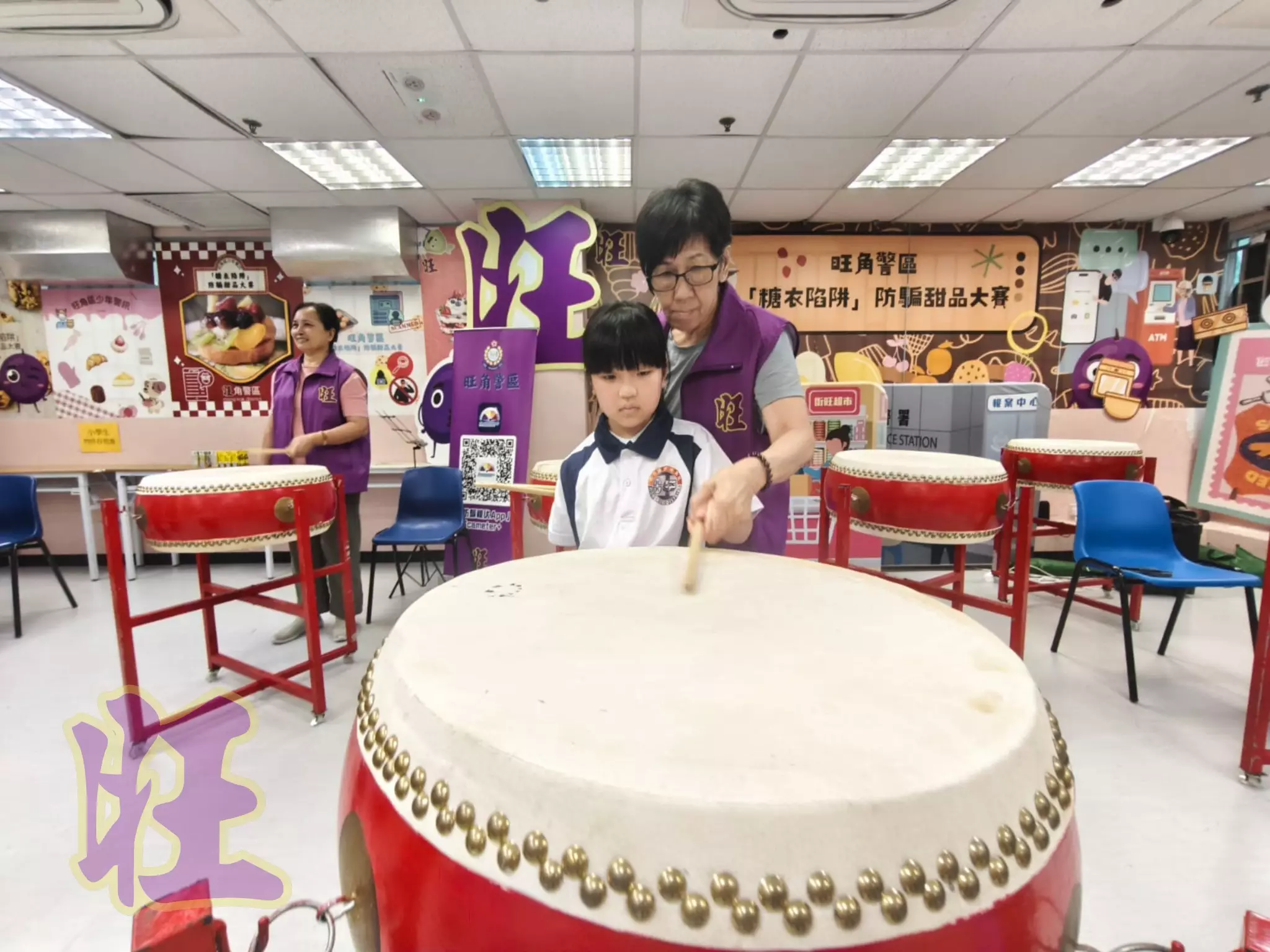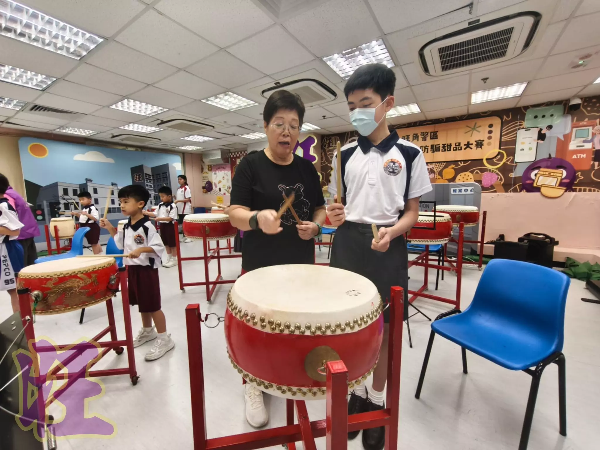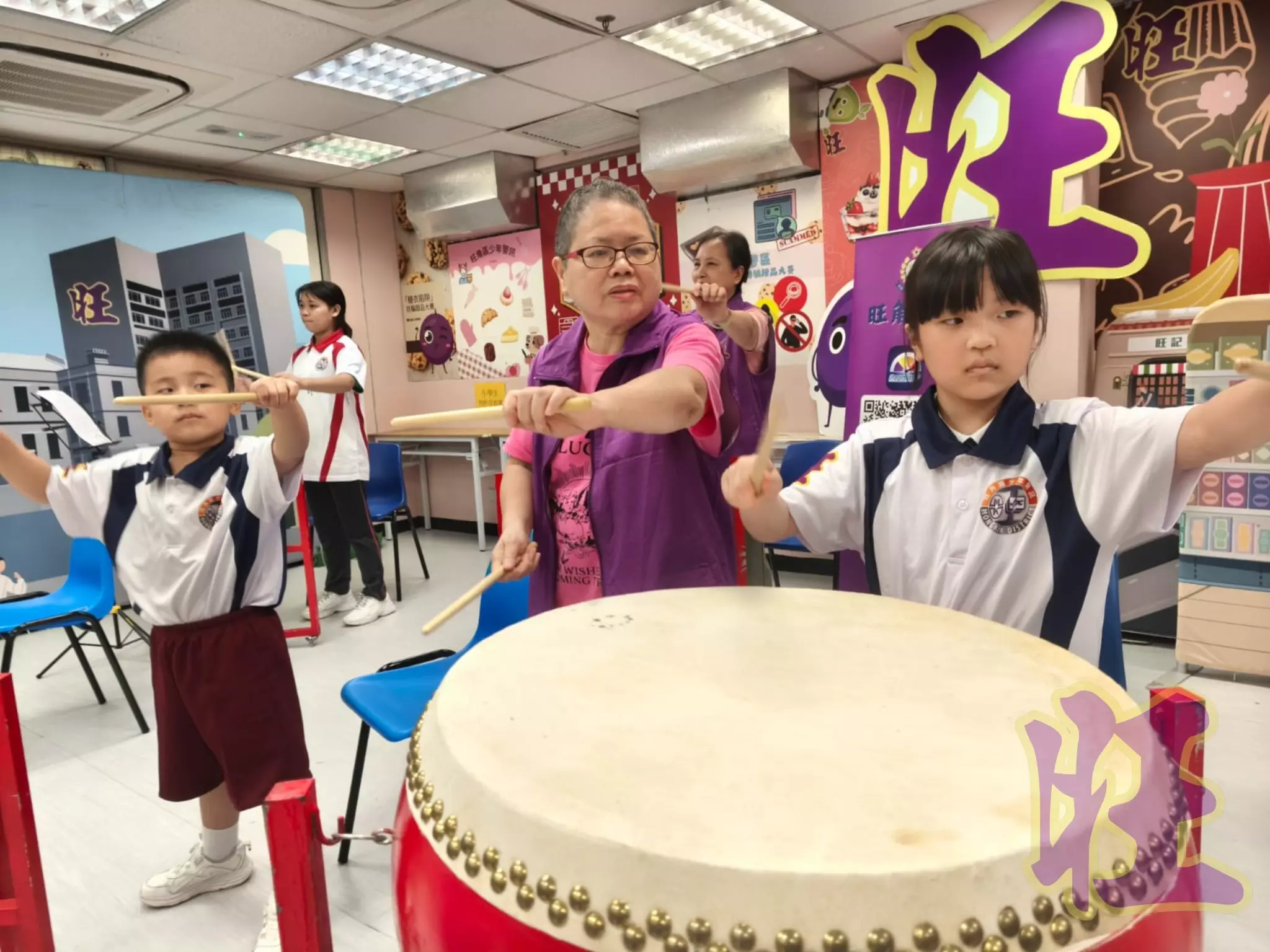 由耆樂警訊的傳統中國鼓的導師娟姐帶領及由Ling姐、Teresa姐及愛姐協助旺角少訊會員體驗傳統中國鼓的節奏魅力!