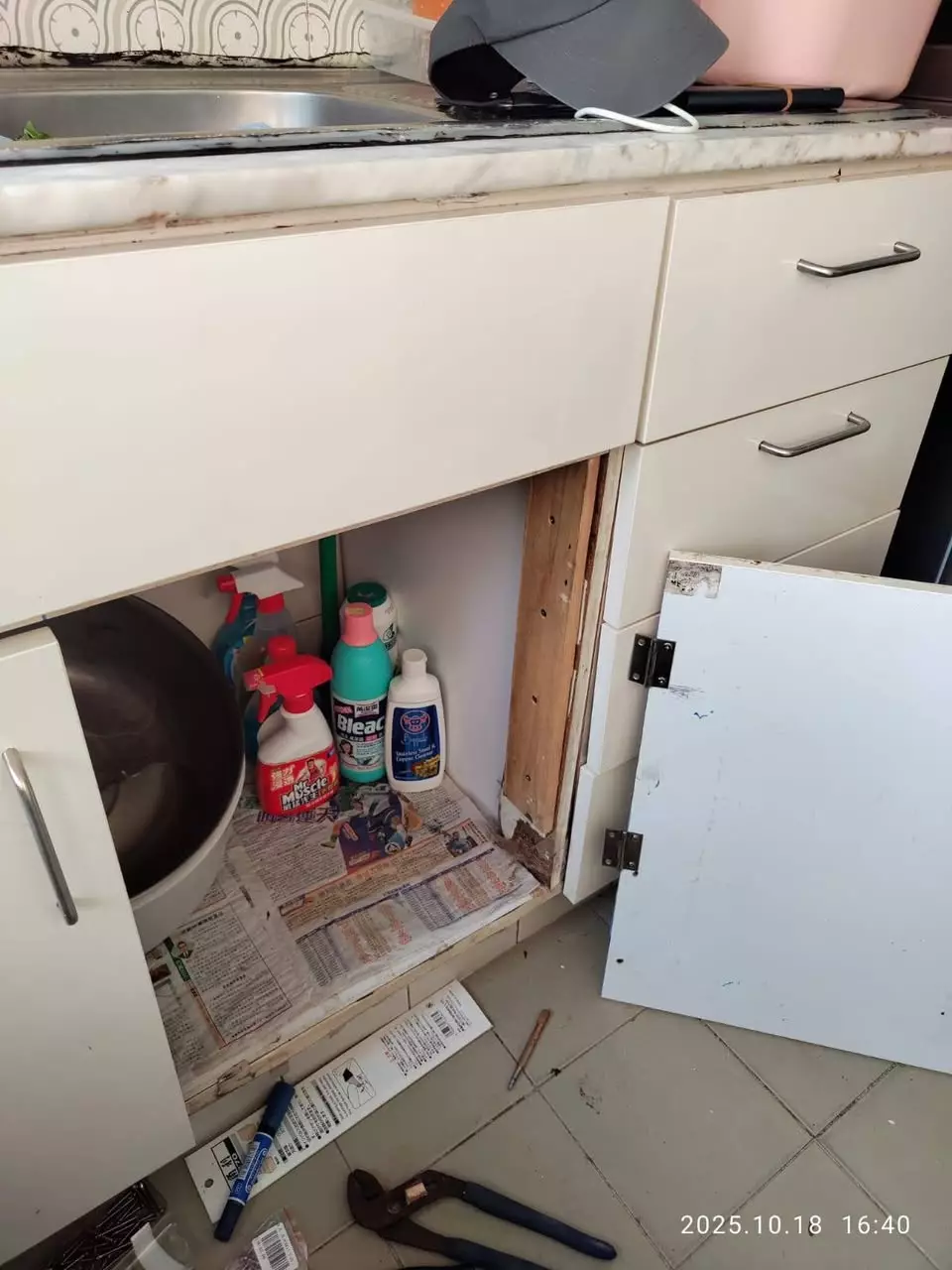 荃灣區祈德尊關愛隊接到祈德尊新邨一位獨居長者的求助,長者家中廚房兩個地櫃門鉸脫落,導致廚房雜物無法妥善收納。關愛隊隊員隨即上門檢查,發現地櫃門一側由俗稱「蔗渣板」的人造板材製成,該樓宇入伙至今已逾 30 年,板材長期受潮後出現發脹、霉爛,最終導致門鉸脫落。 針對這一情況,關愛隊隊員仔細研究後採購了三分厚木板,在要安裝門鉸的位置用三分木板加固加厚,由於改用不同的門鉸,故此舊門要作出剪裁。經過約3小時的努力,脫落的地櫃門重新安裝妥當。 問題解決後,長者家中的廚房雜物得以重新收納整齊,困擾其多時的煩心事徹底消除。 來源:荃灣區祈德尊關愛隊FB