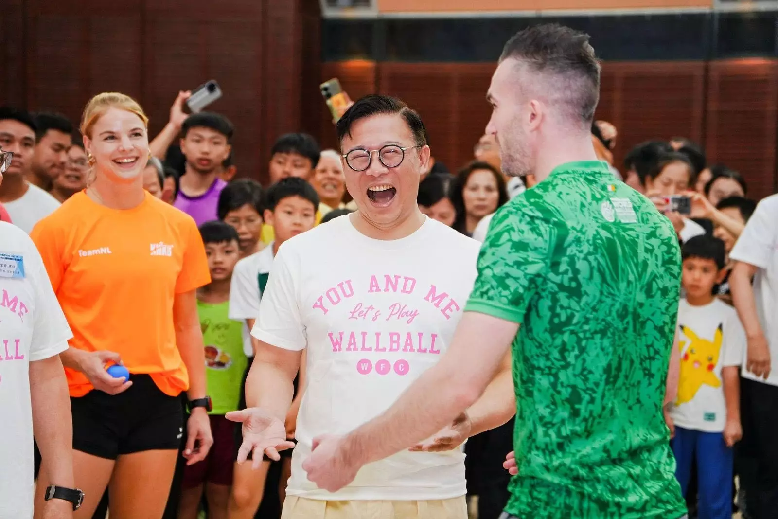1.油尖旺民政處尋日(19/10)支持喺尖沙咀會堂舉辦牆球(wallball)體驗日。由牆球世界冠軍同香港運動員示範,律政司副司長Horace同油尖旺民政專員Edward等即場試玩。