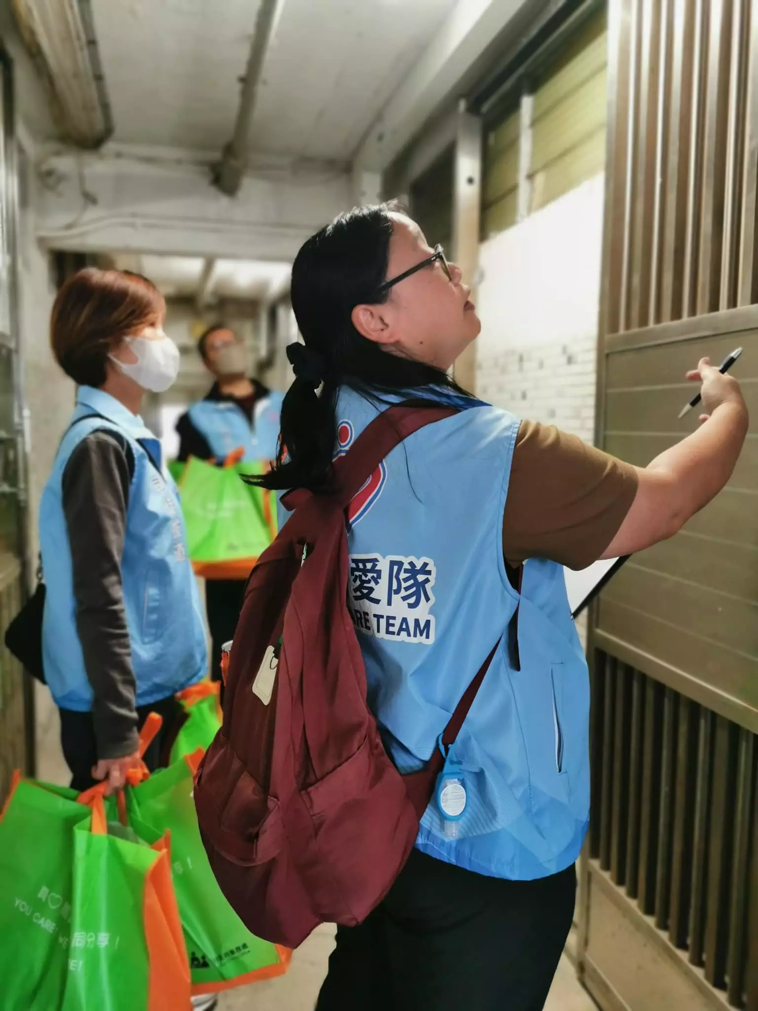 義工深入勵德邨各座大廈,逐戶為長者送上關懷與問候。他們不僅詳細瞭解長者的日常生活狀況、身體健康及實際需求,還向長者傳遞社區對其的支持與關注,用行動踐行「並肩同行」的活動精神,讓長者感受到社區溫暖。
