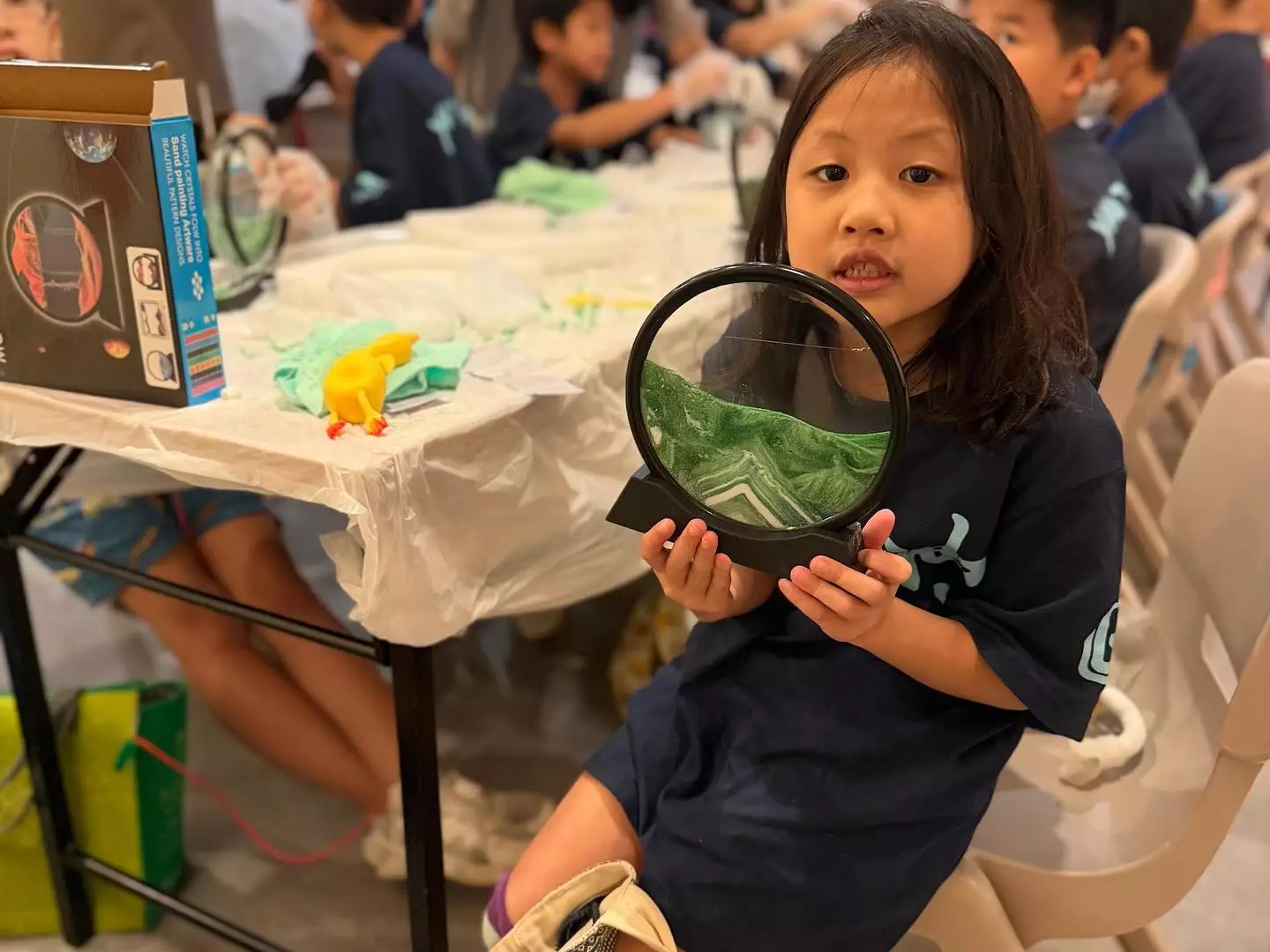 之後,大家參加了一項特備節目: 沙彩和韻 ── 玻璃彩繪流沙畫製作 ,發揮了會員的創意感受抗戰期間文化人士聚沙成塔、齊心抗日的民族精神。