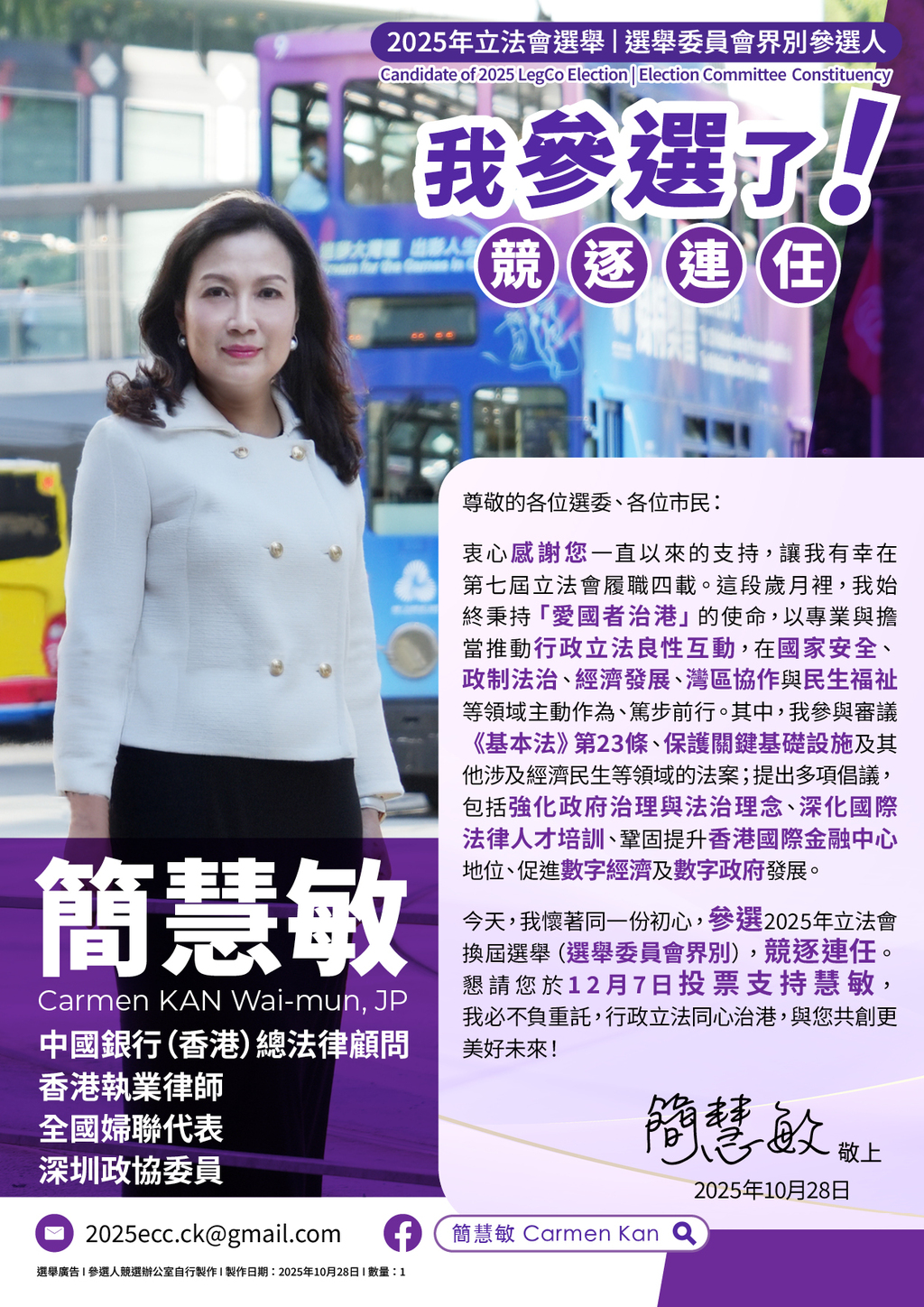 選舉廣告 I 參選人競選辦公室自行製作 l 製作日期: 2025年10月28日 l 數量: 3