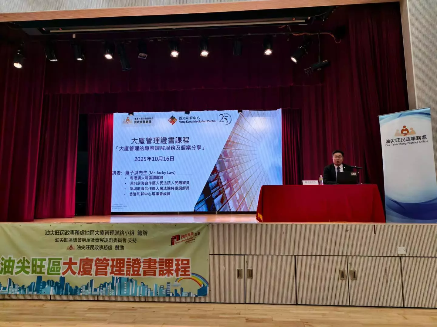 1.油尖旺民政處喺10月再舉辦兩場大廈管理證書課程,16/10就有香港和解中心代表講解大廈管理嘅專業調解服務。