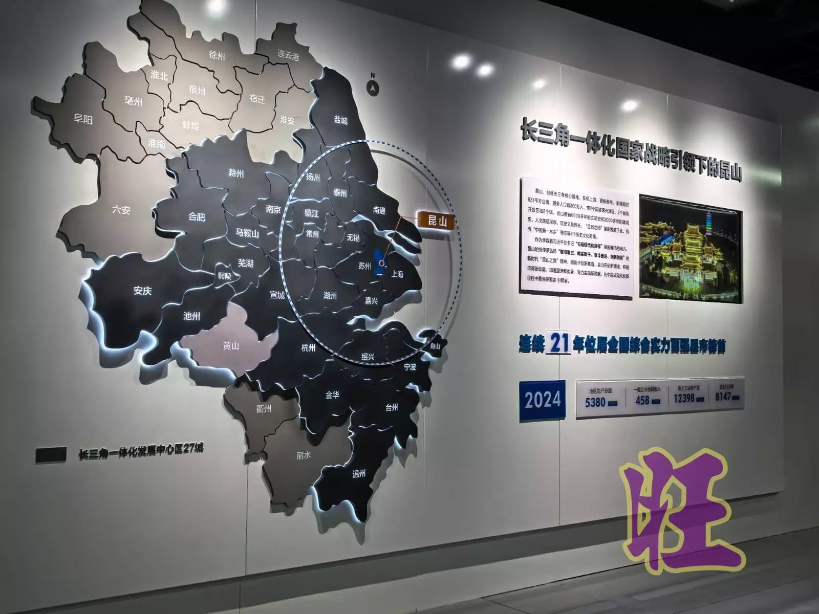 行程首日學員們即參觀昆山市科博中心 ,認識昆山從「魚米之鄉」到「工業強縣」的發展征程。昆山緊鄰上海,總面積僅931平方公里,人口也只二百多萬,卻憑著優越的地理優勢 及政府的政策扶持成功吸引大量本地、台資、外資設廠,形成以電子信息、精密機械為主的現代化產業集群 → ,創造從名不經傳到連續十餘年蟬聯「中國綜合實力百強縣市」榜首的傳奇 ,更是第一個人均GDP打破20000美元 大關的縣級市。