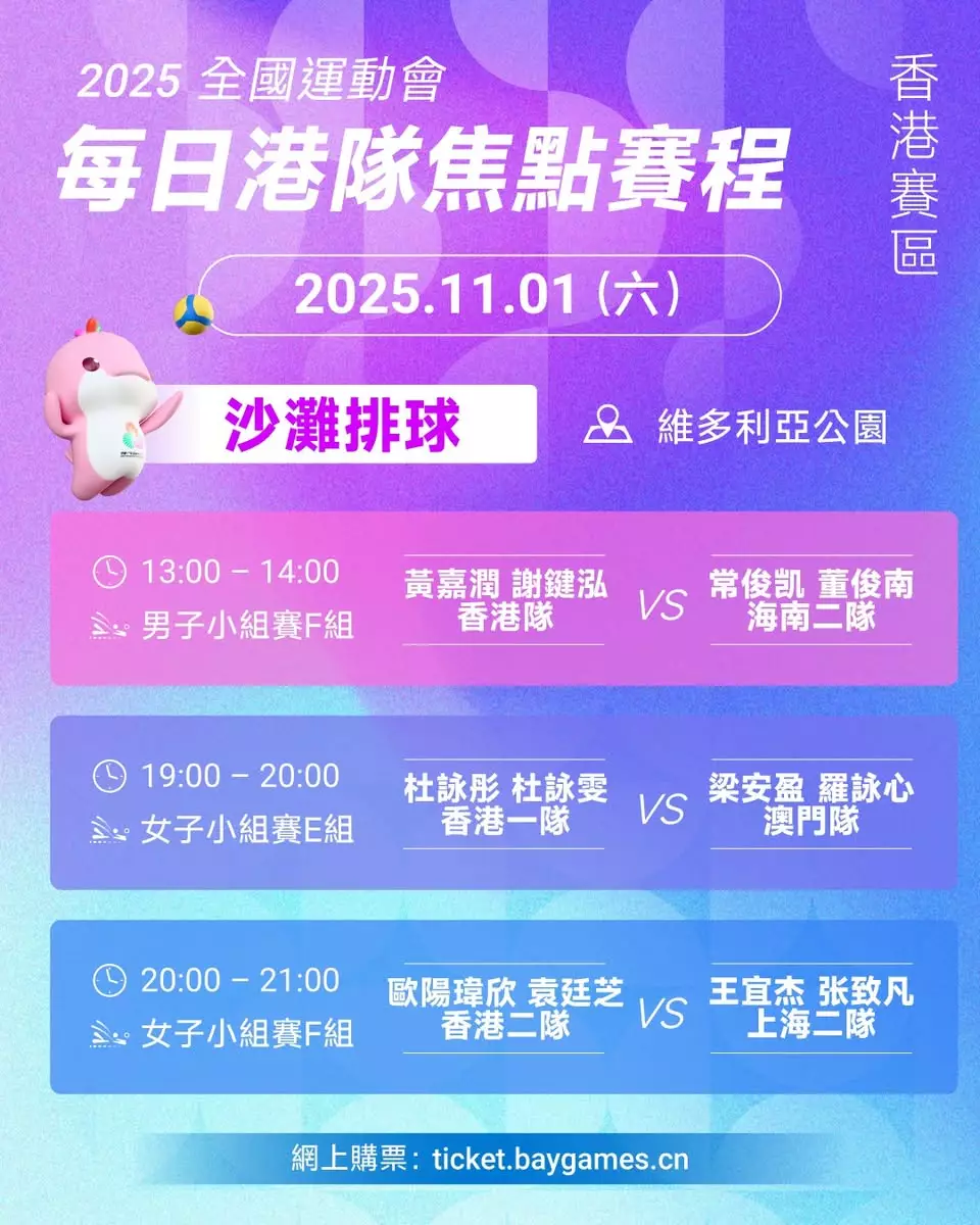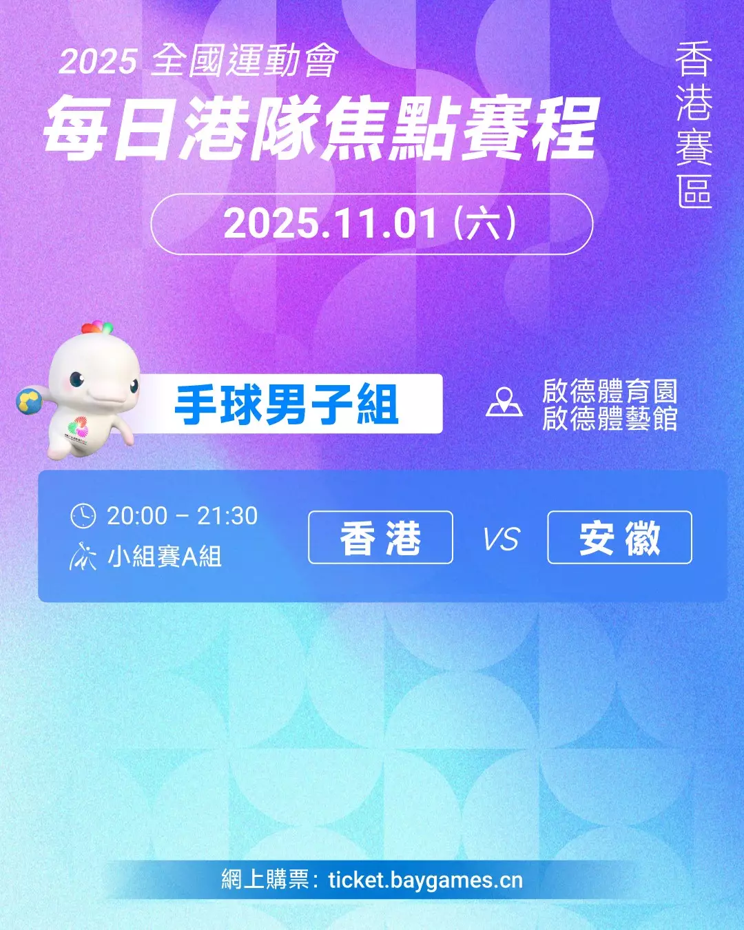 【每日港隊焦點賽程|香港賽區】11月1日(星期六)