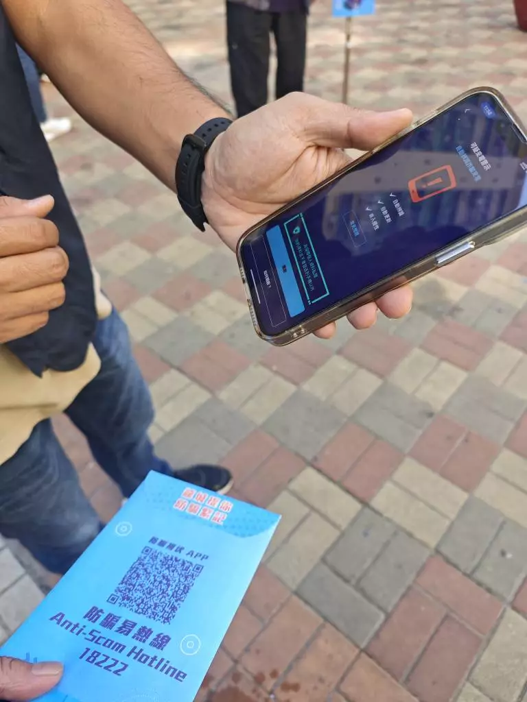 除咗教街坊使用「防騙視伏App」去掃描可疑短訊,人員仲講解如何預防詐騙陷阱和最新嘅詐騙手法以及派發宣傳單張和紀念品。提醒市民要時刻保持警惕、提防騙子。