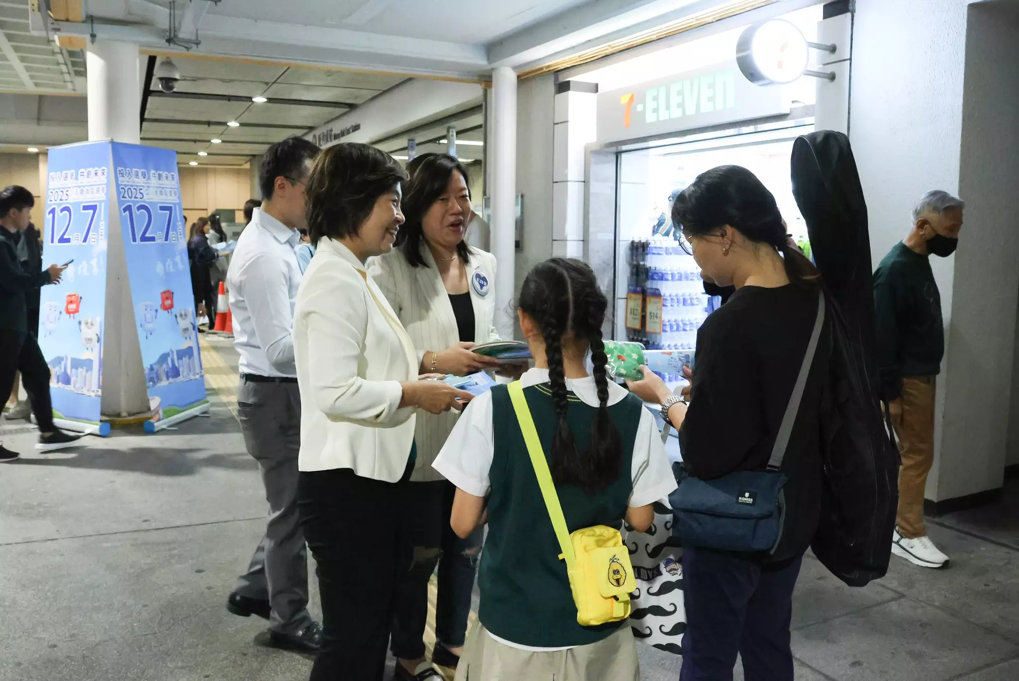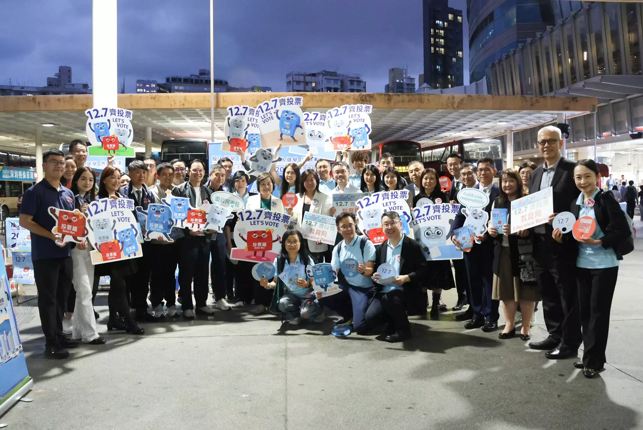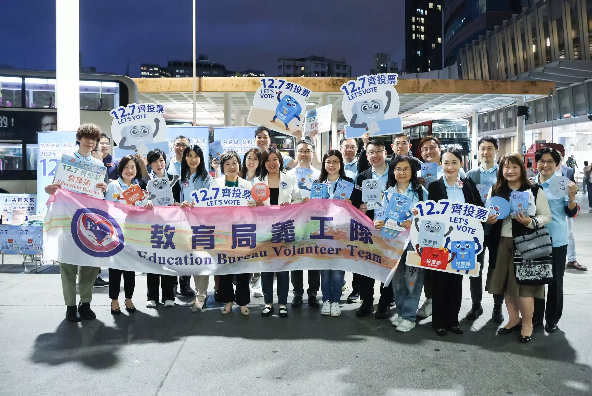 1.教育局義工團隊尋日傍晚(6/11)由教育局局長同常秘帶領,到旺角東站外嘅民青局/青聯街站,叫埋一眾區內外校長一齊呼籲大家「12.7」立法會選舉投票。