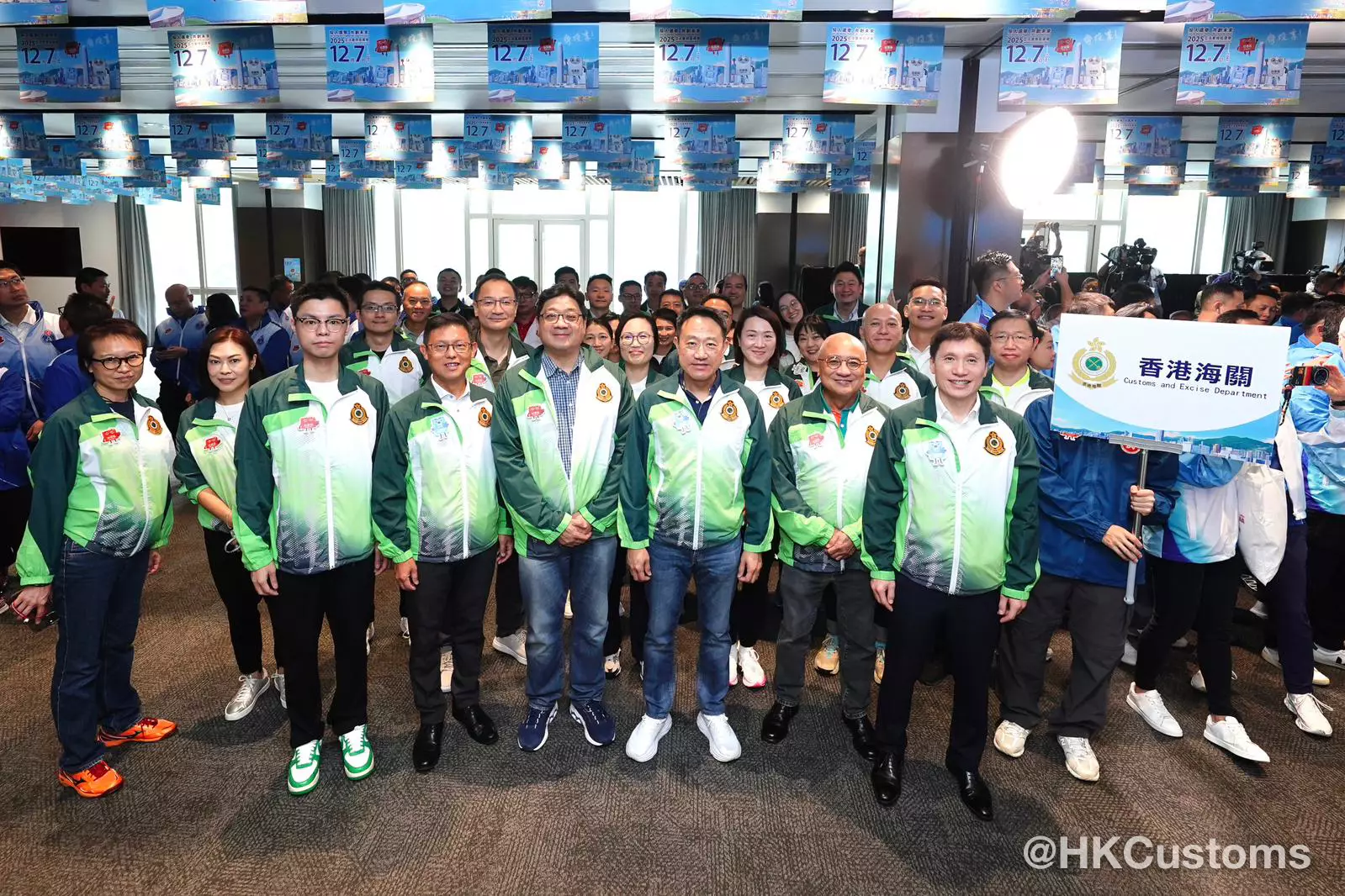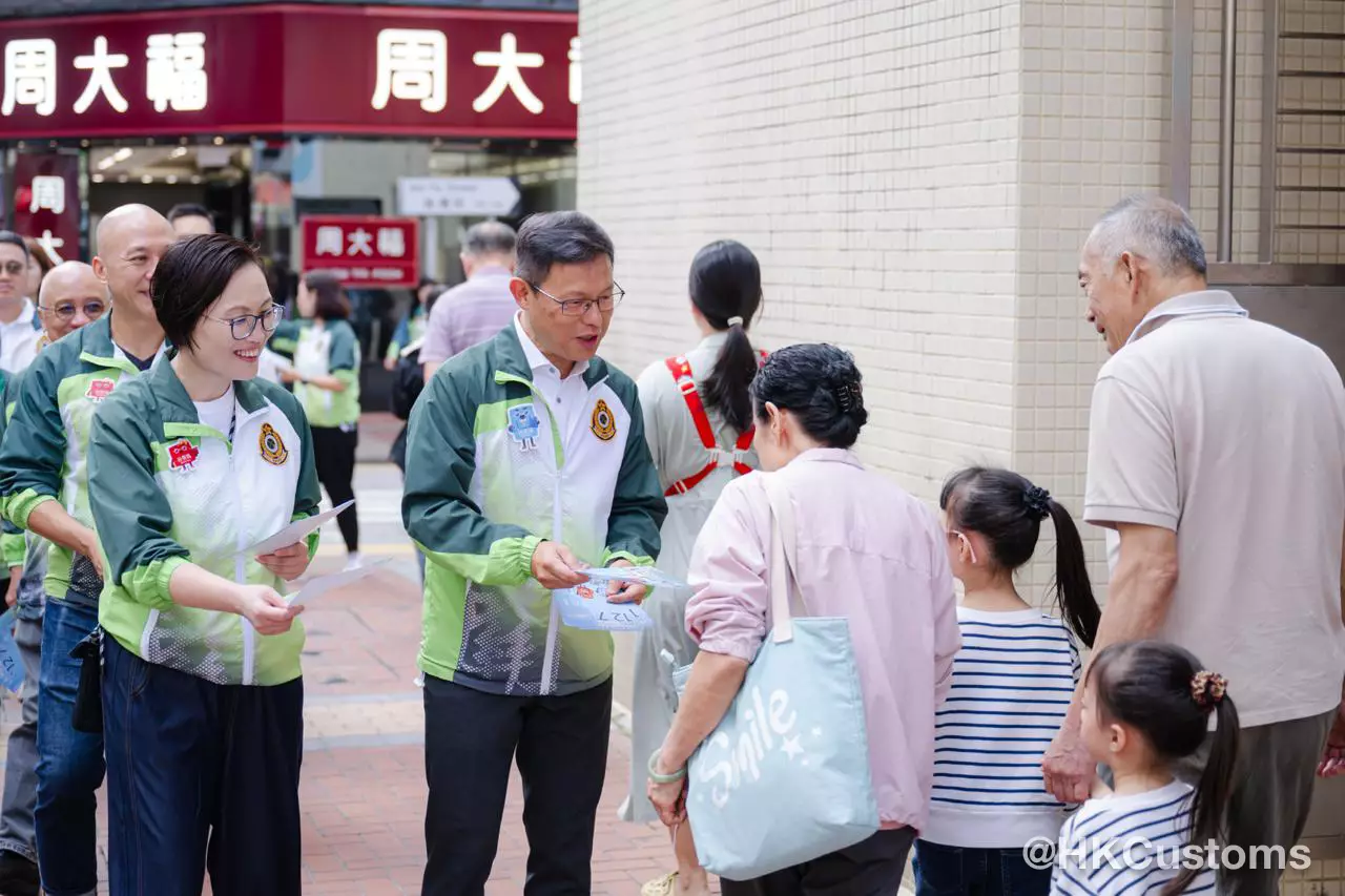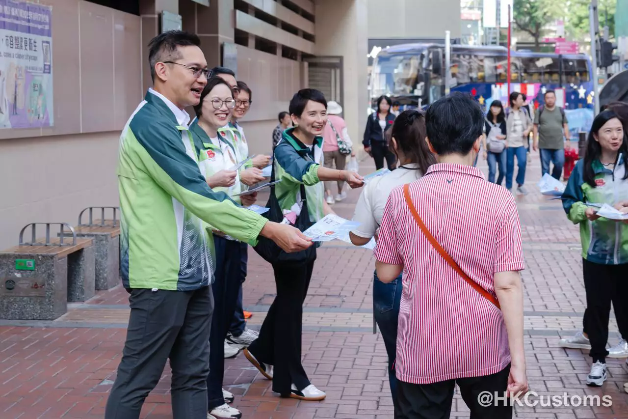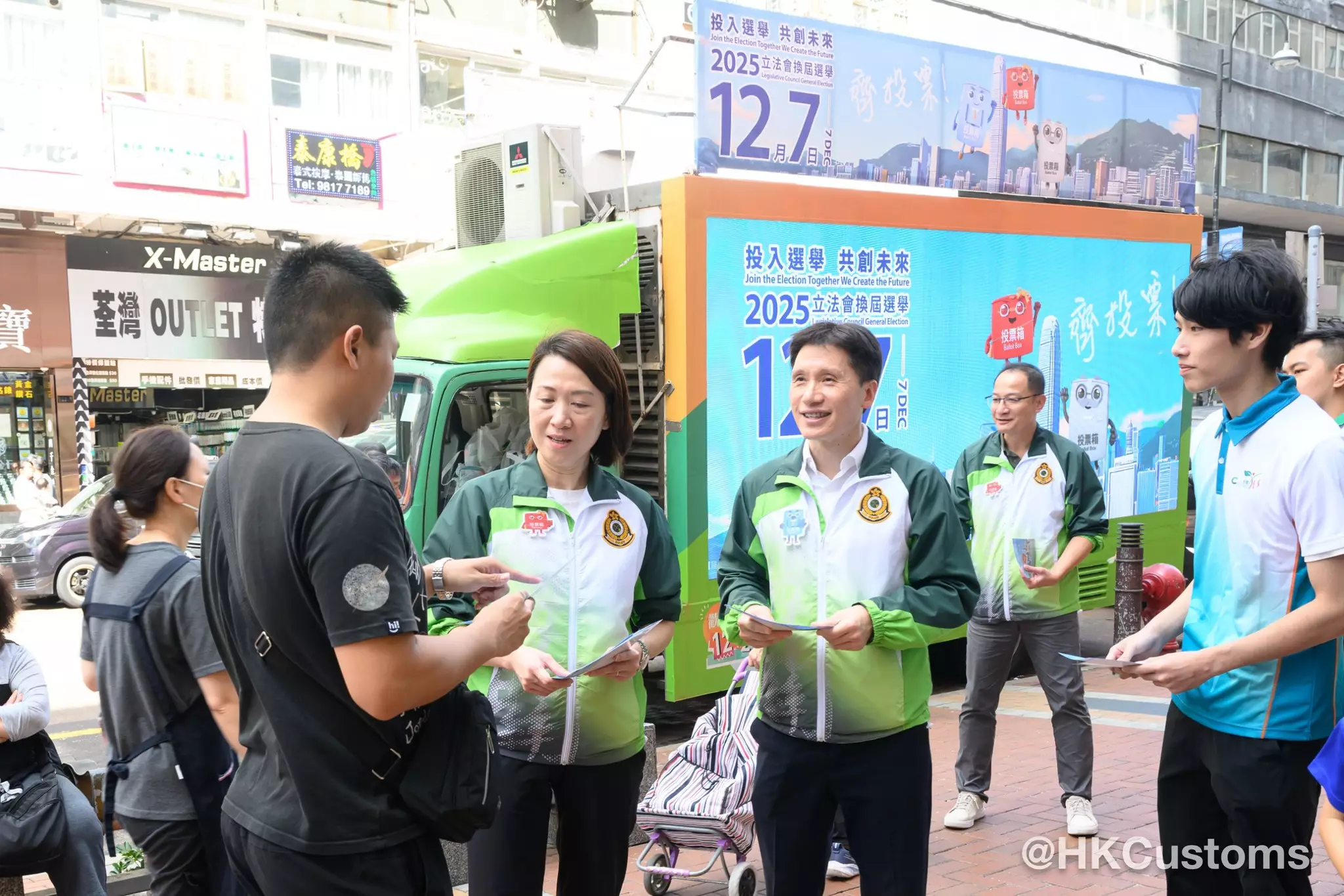 海關關長陳子達今日聯同海關管理層、海關青年發展計劃及工協會代表出席保安局及紀律部隊誓師大會,支持立法會選舉投票。隨後,關長陳 Sir 率領團隊到訪荃灣區宣傳 2025 年立法會換屆選舉,呼籲市民運用其寶貴的一票,於 12 月 7 日投票日踴躍投票,為香港立法會選出有擔當、有志向、有能力的新一屆立法會議員。