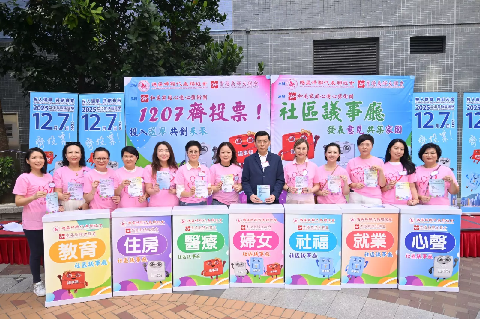 今日(11月8日)下午,由港區婦聯代表聯誼會及香港島婦女聯會主辦,和美家庭心連心藝術團承辦的「1207社區議事廳」活動,於上環文化廣場隆重舉行。活動以靈活多元的形式深入社區,聚焦住房、就業、醫療、教育、女性發展及社會福利等市民最關心的議題,廣泛收集居民希望立法會議員及相關部門解決的問題與意見,在社區推廣公民參與文化。