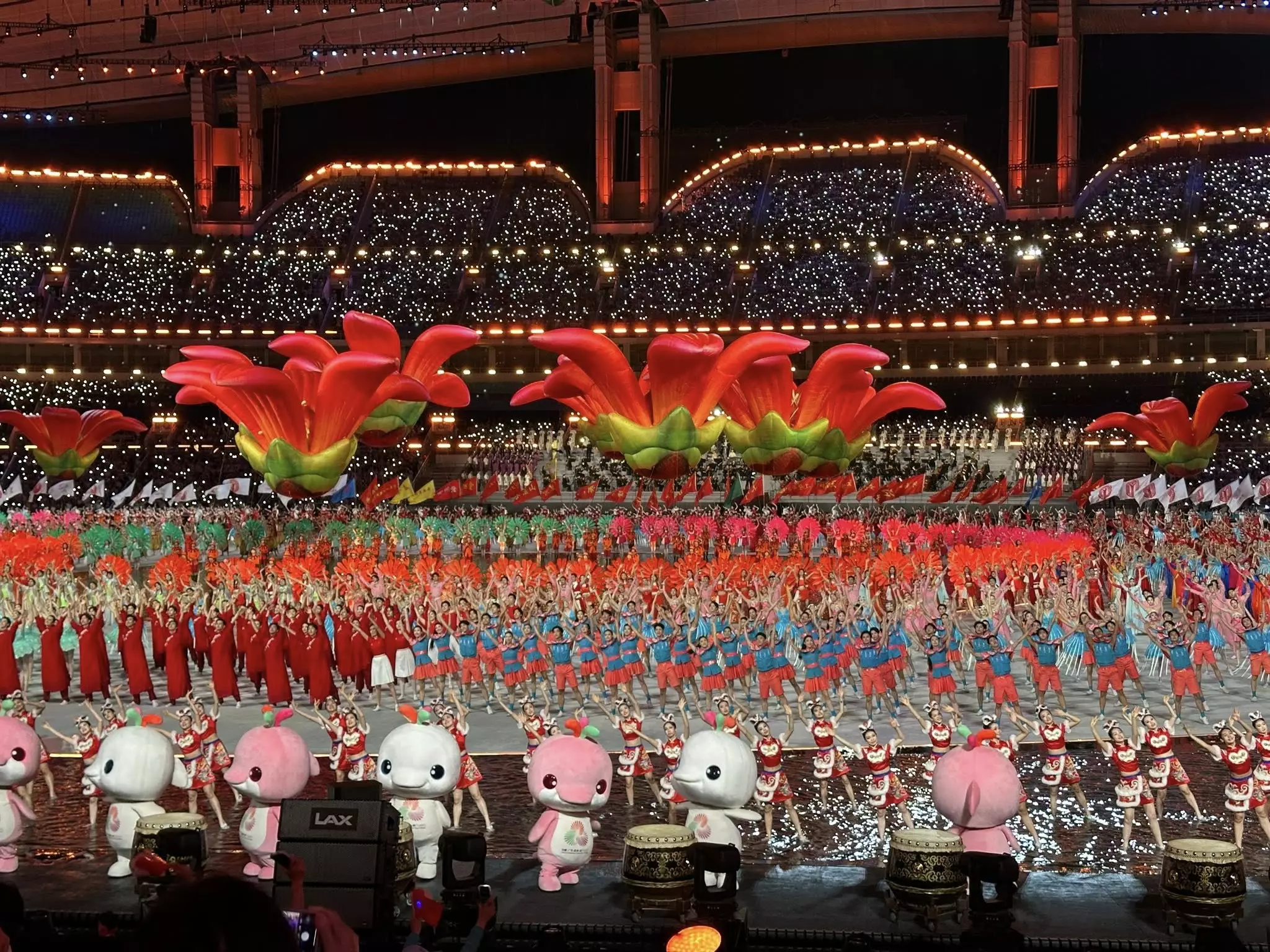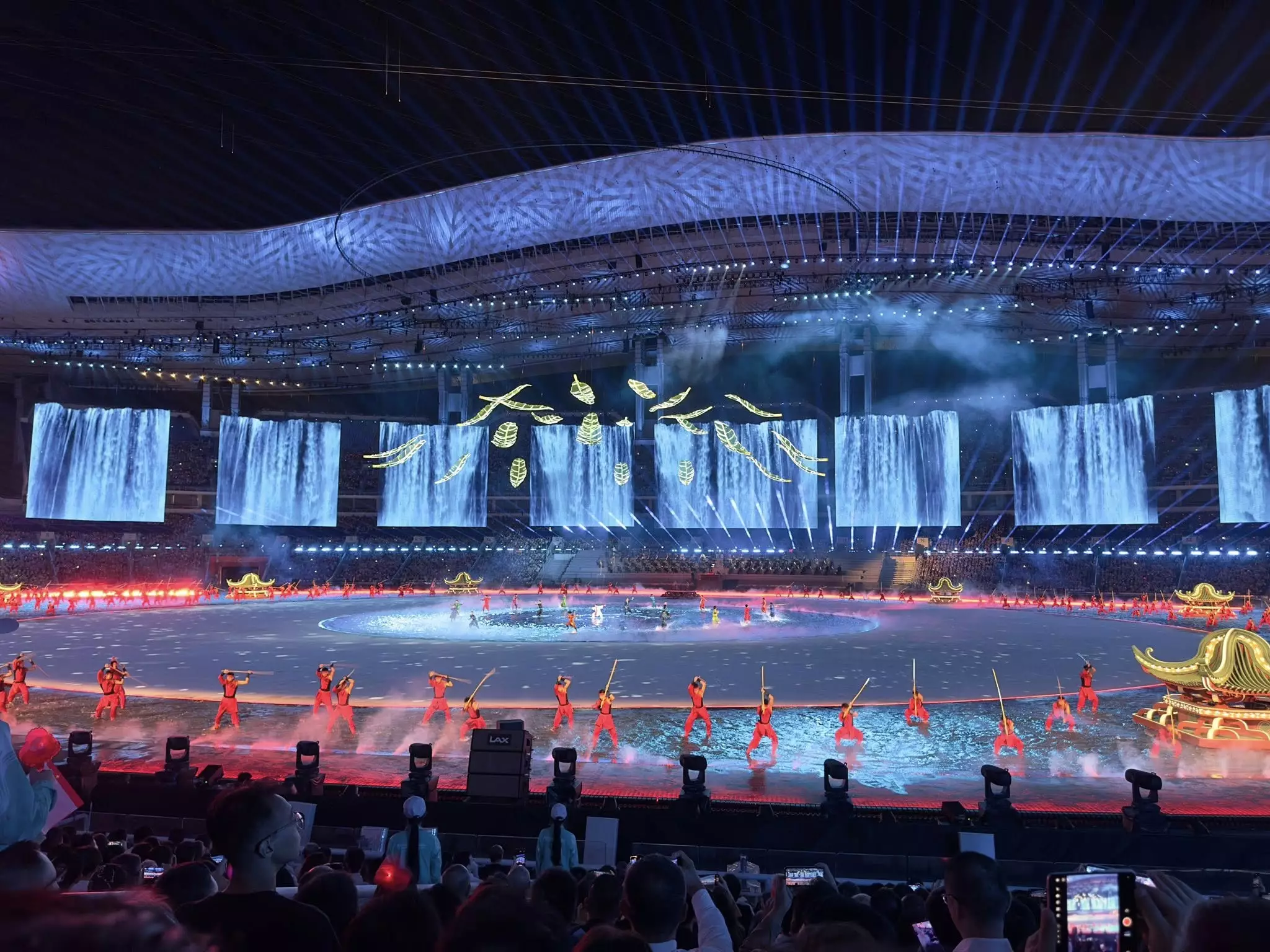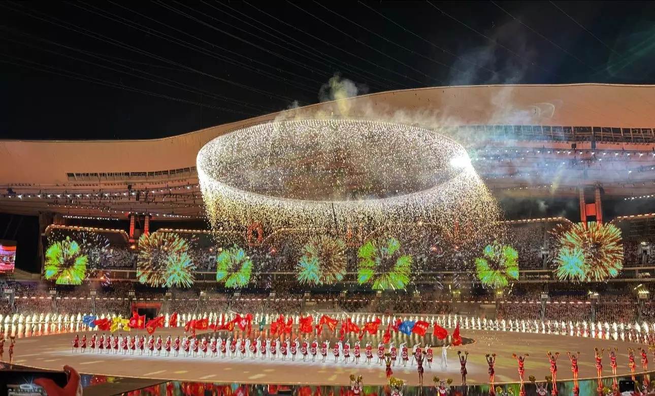 創意:開幕式氣勢磅礴,利用人工智能技術將嶺南風光的長卷鋪陳出來,令傳統文化和現代科技水乳交融的結合和發揮作用。例如醒獅表演與生成式人工智能及虛擬實境技術相互交融,英歌鑼鼓搭配全息投影,擴增實境讓觀眾如置身於龍舟競渡的場景,通過創新技術呈現嶺南文化,打造一場沉浸式的「古今對話」。舞台水陸並陳的設計也是十分聰明和罕見,既讓陸地和水做到完美交融,也充分在表演中用好「水」的元素。放諸四海,這個開幕式水平之高,實在令人驚豔、嘆為觀止。