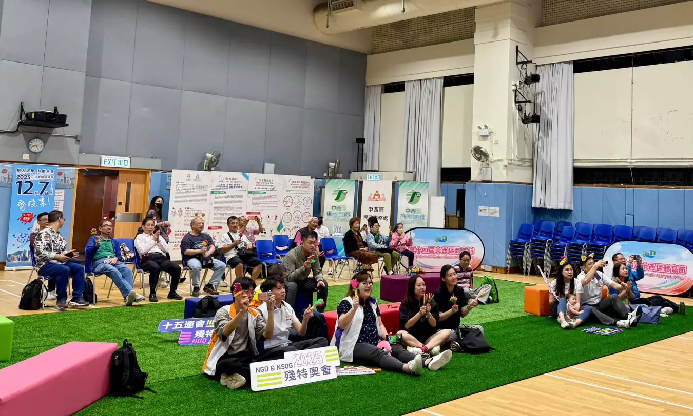 今屆全運會首次由粵港澳三地聯合承辦,係全城矚目嘅體育盛事!西營盤社區綜合大樓社區會堂已變身成優閒舒適嘅打氣區,一家大細、三五知己都可以席地而坐觀賞賽事直播,小朋友又可隨便喺會堂地蓆上走動,大大提升地區人士同居民嘅觀賞體驗。直播十五運會開幕式時,觀賞站氣氛熱烈,特別係當大家見到香港特區代表團進場嘅時候,大人同小朋友都熱情高呼,為運動員歡呼打氣!