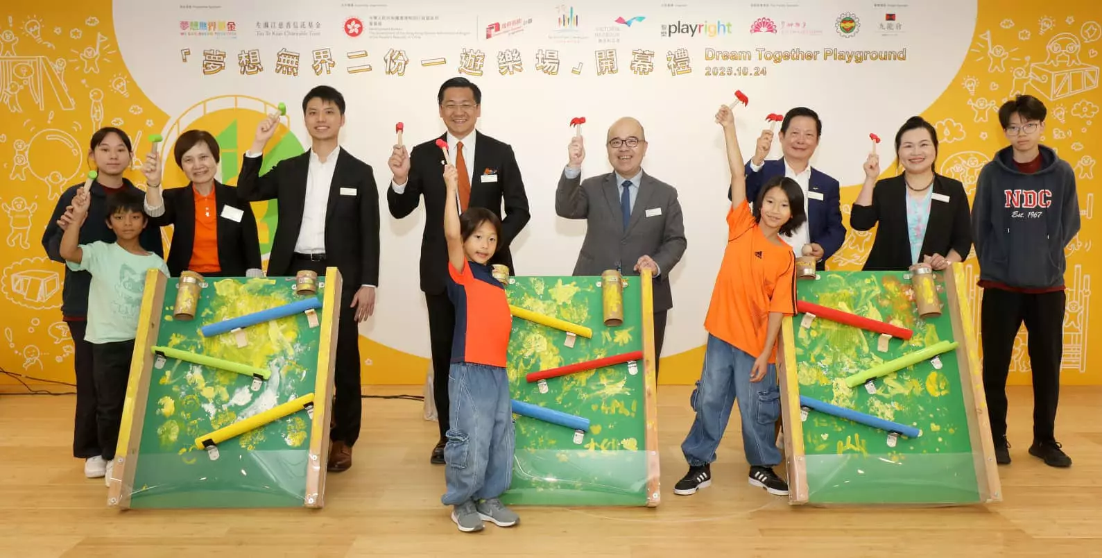 日前(24/10),九龍城民政助理專員張彥喬喺華信街1號,與「智樂兒童遊樂協會」夥伴、各政府部門同事及社區大小朋友們共同見證「夢想無界二分一遊樂場」 隆重開幕。 呢個嶄新 嘅遊樂空間不僅係遊戲場所,更係充滿創意與想像嘅夢想舞台。場內設有獨特遊樂設施同互動遊戲區,全面推動「共融遊樂」理念,讓不同能力嘅兒童都可以喺度自由探索、結交新朋友,盡情享受遊戲嘅純真快樂。 呢個遊樂場實現咗對共融社區嘅願景,讓每個小朋友都能夠喺快樂中成長。