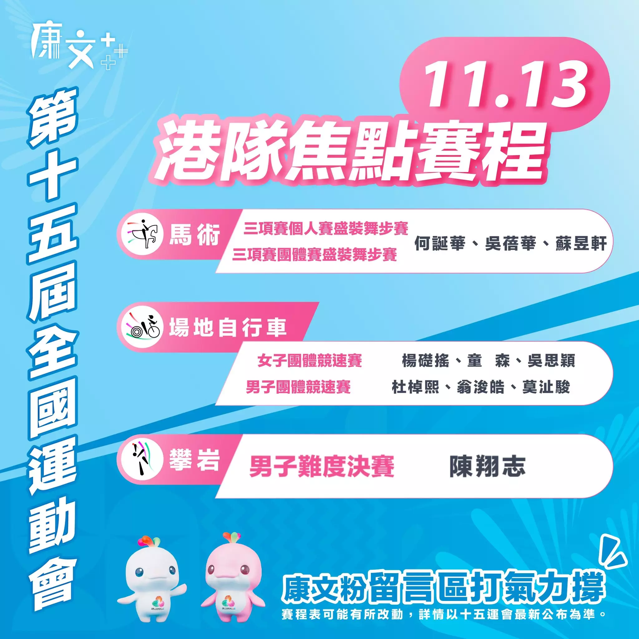 香港隊代表聽日繼續出戰多項全運會賽事,為大家送上焦點賽程,一齊為港隊打氣