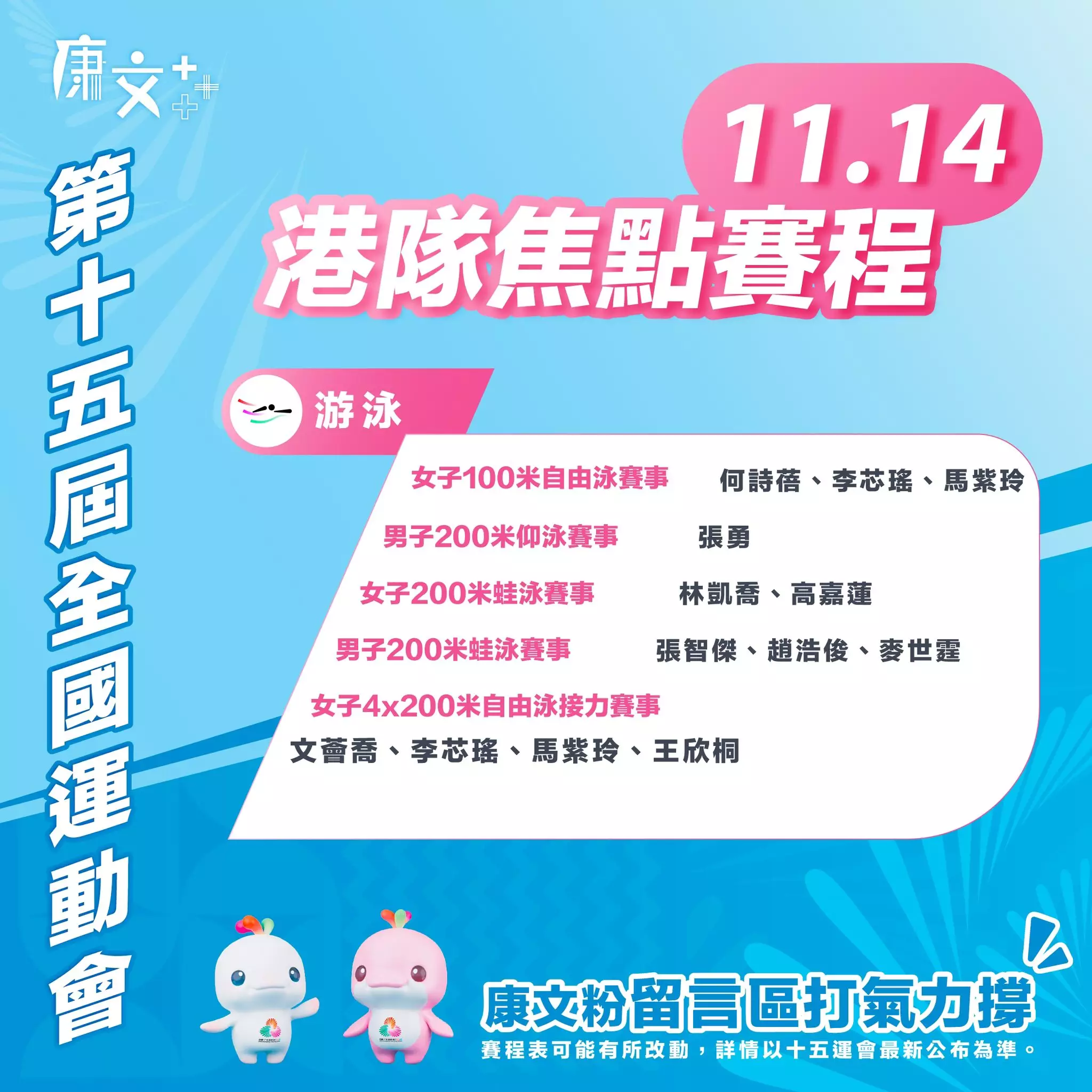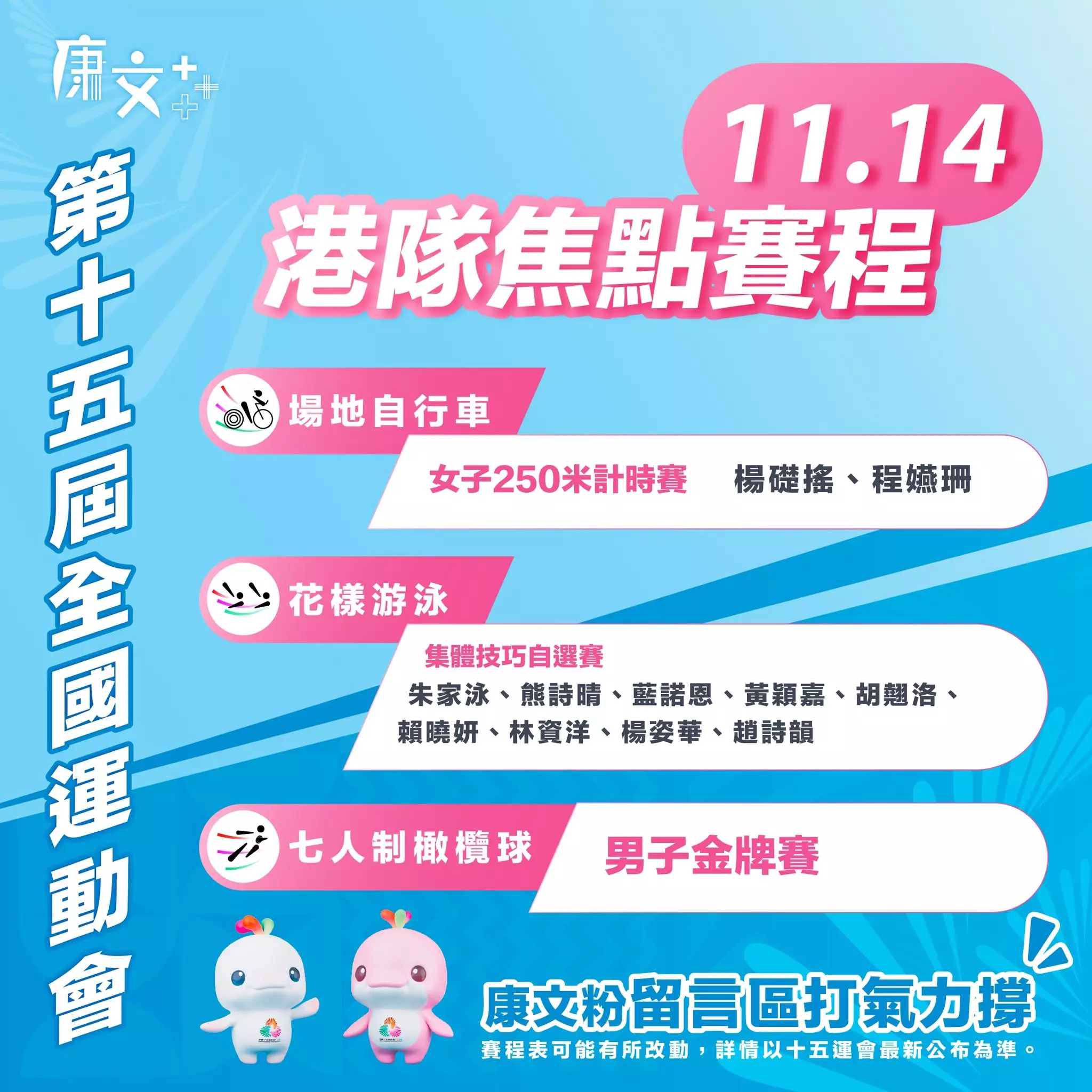 香港隊代表繼續出戰多項全運會賽事,記低焦點賽程,齊齊支持港隊