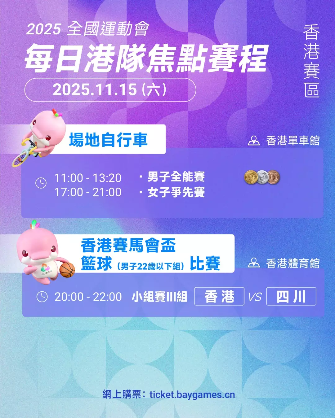 每日港隊焦點賽程|香港賽區 11月15日(星期六)
