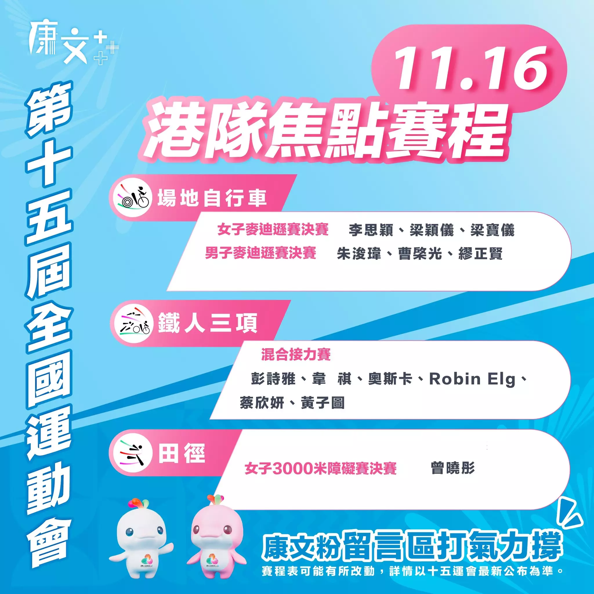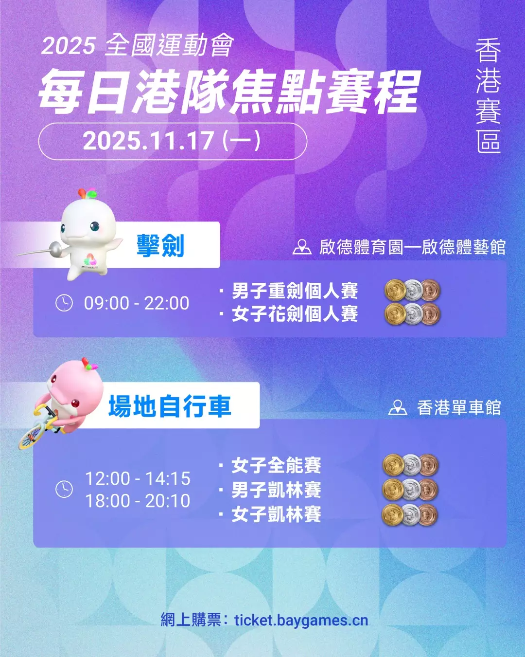 每日港隊焦點賽程|香港賽區 11月17日(星期一)