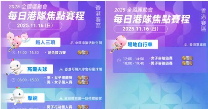 每日港隊焦點賽程|香港賽區 11月17日(星期一)
