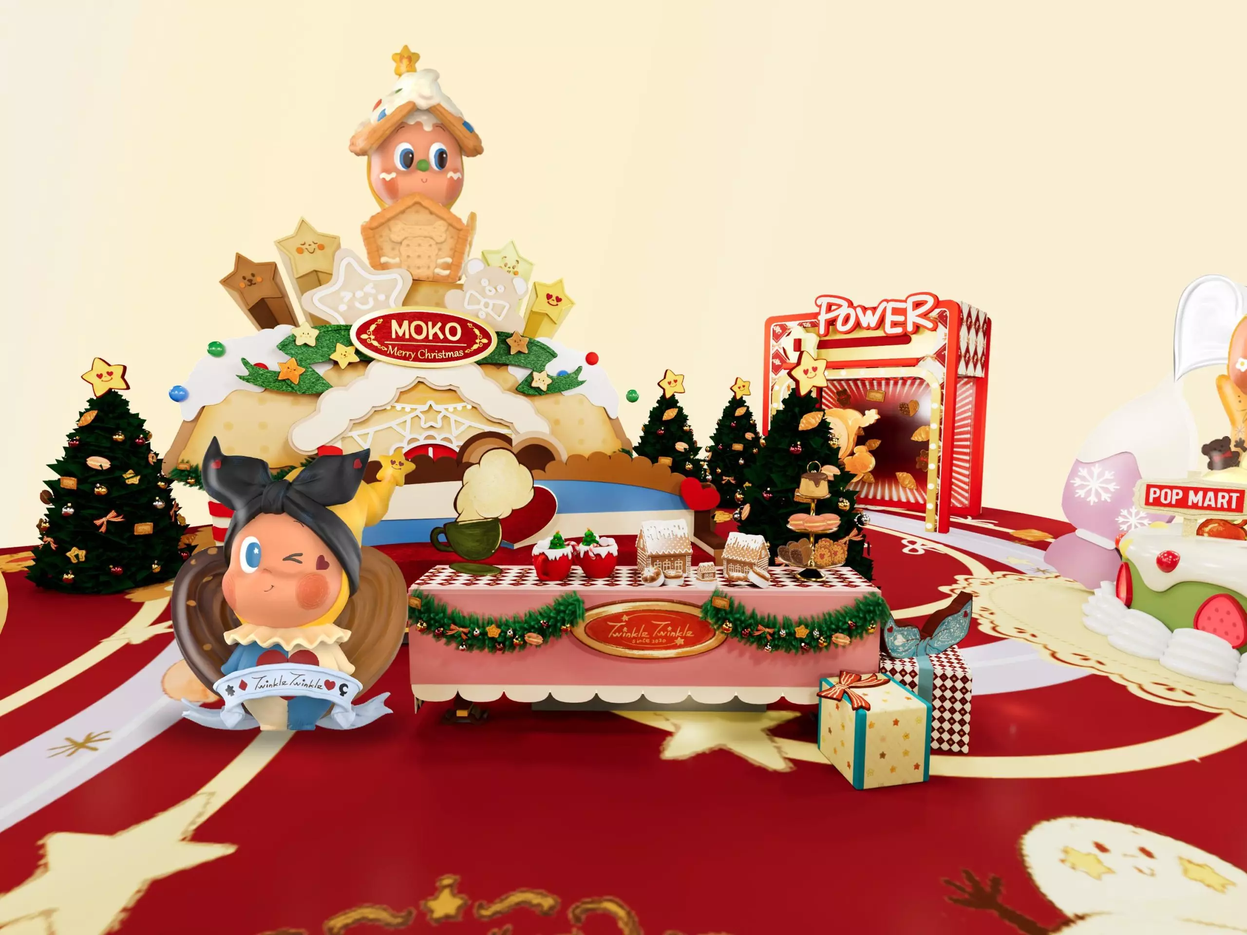 POP MART星星人「美味時刻」系列甫推出即瞬間成為網絡及玩具界熱話,是次更破天荒以巨大化造型現身MOKO,穿梭於派對內的巨型甜蜜打卡場景及3大互動遊樂體驗,讓粉絲近距離親密合照!星級推介場景包括全港首個「餅乾屋星星人」將放大200倍強勢坐鎮於派對中,屋前設有「甜蜜共聚空間」,訪客可以和「幸福蝴蝶酥星星人」於精心佈置的聖誕餐桌結伴共享豐盛的節日大餐!溫暖甜心「馬卡龍時刻星星人」則伴隨悠揚音樂,靜坐在璀璨星星旁迎接大家參加派對。匆忙趕到的「咖啡牛奶浴星星人」意外地將閃閃發光的星光牛奶滿瀉地上,為派對增添即興魔法表演!另一邊廂,「強壯麵包星星人」正專注地於巨型「千影夢幻焗爐」為大家製作香氣四溢的牛角包,施展鏡像魔法令美味Double-Up;而「抹茶奶油雪星星人」正忙於挑選士多啤梨及車厘子為聖誕蛋糕作點綴,保證大家可以嚐到最美味可口的甜點!