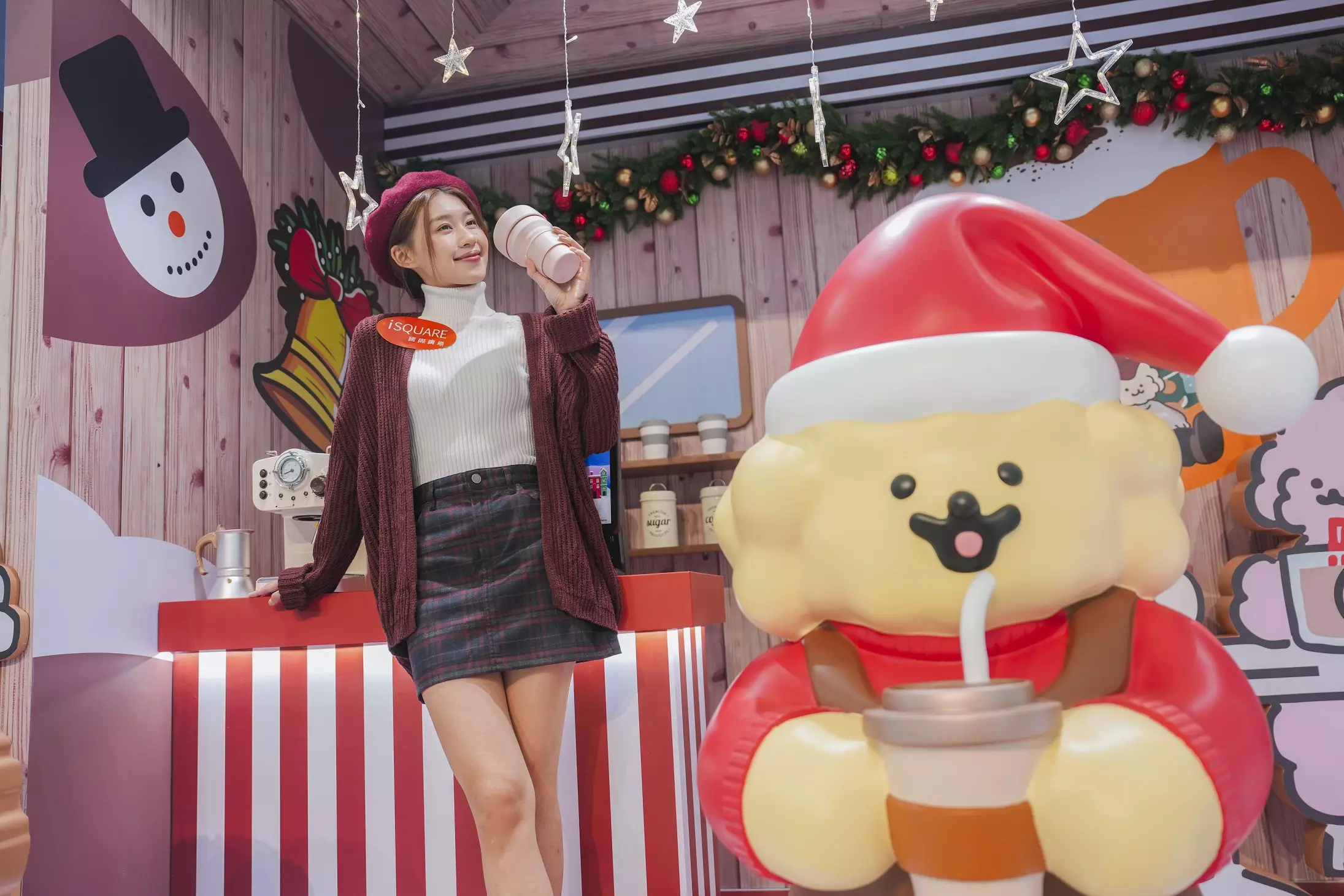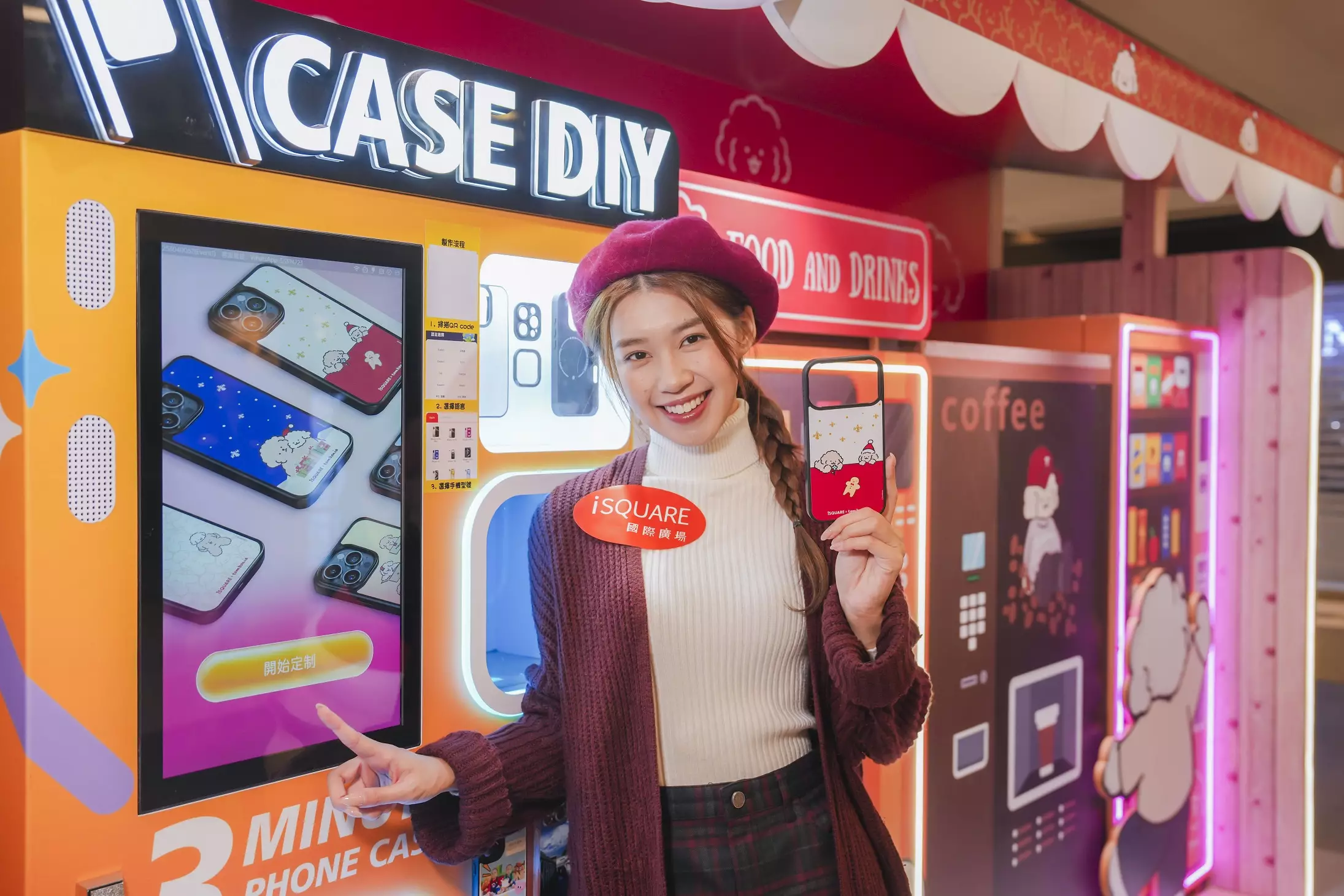 萌爆Muck將會首次走入香港商場,到iSQUARE國際廣場渡過開心聖誕新年,3大打卡區域分別展示活潑 Muck的不同魅力,包括:① iSQUARE國際廣場地下正門iPIAZZA,走冬日戶外風的萌汪Muck即將探索聖誕野營歷險,5 米高化身聖誕老人 Look的可愛Muck,向你介紹他最喜歡的冬日活動:露營、滑雪及垂釣等等。②三樓iFUNCTION的汪星歐陸聖誕浪漫之城,鬼馬Muck化身為咖啡師及速遞員等不同角色造型,在火樹銀花的溫馨小鎮中,讓你被一股可愛又浪漫的氛圍擁抱。再去到③大堂樓層iEXHIBITION的萌Muck聖誕販機站,襲來日系的都會聖誕氣氛,Muck仿佛是日本街頭遇上的老朋友,帶我們在售賣機前選購飲品零食。以為萌Muck聖誕販機站只是幾部繪製的自動販賣機?Muck幽默的把一部真實的手機保護殼販賣機置放其中,大家憑指定電子消費,即可於自動販賣機換領Muck限量手機保護殼,也是香港首次在商場使用自動販賣機換領手機殼。