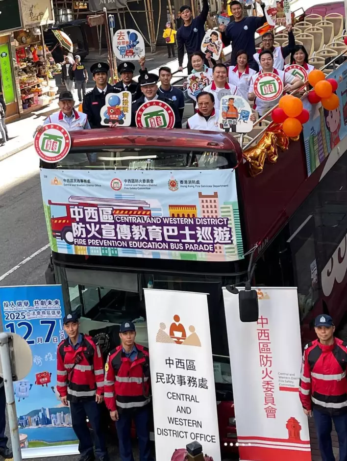 在剛過去的星期六 (11月22日),中西區民政處聯同中西區防火委員會及消防處,共同舉辦「中西區防火宣傳教育巴士巡遊」活動,以雙層開篷巴士作為移動宣傳平台,穿梭區內多個重點區域,向市民傳遞居家防火知識與火場應變要領。