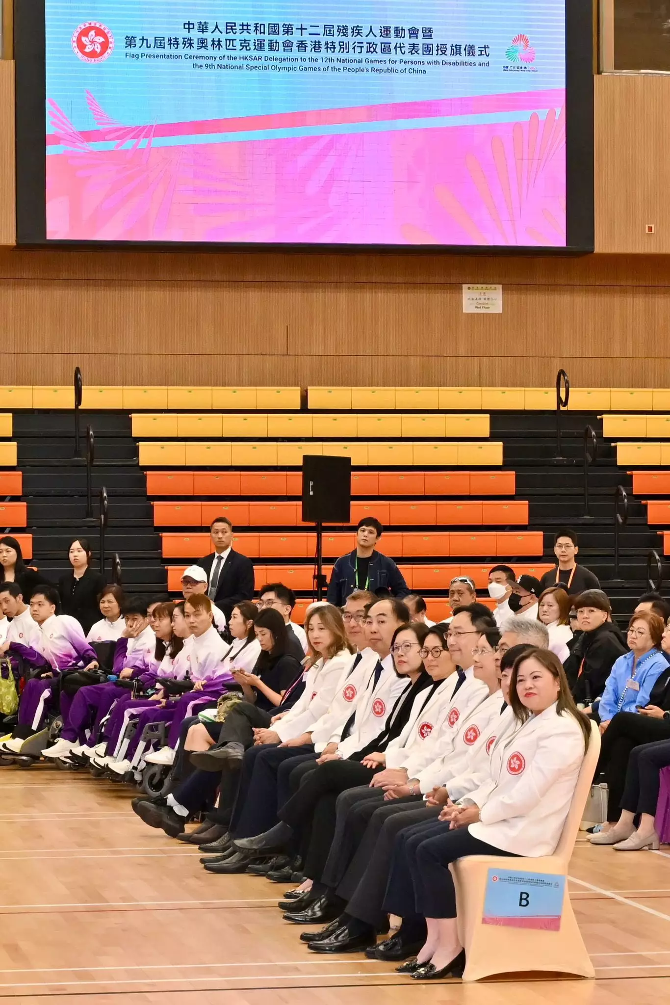 今天是緊接15運會舉行的殘特奧會的香港代表團授旗儀式,羅淑佩非常榮幸再一次以香港代表團團長身份接過由行政長官親自授予的香港特別行政區區旗!萬分期待280位參賽健兒能突破自己,勇於追夢,在12月8至15日舉行的殘特奧會再創佳績!大家一起為你們打氣喝采!