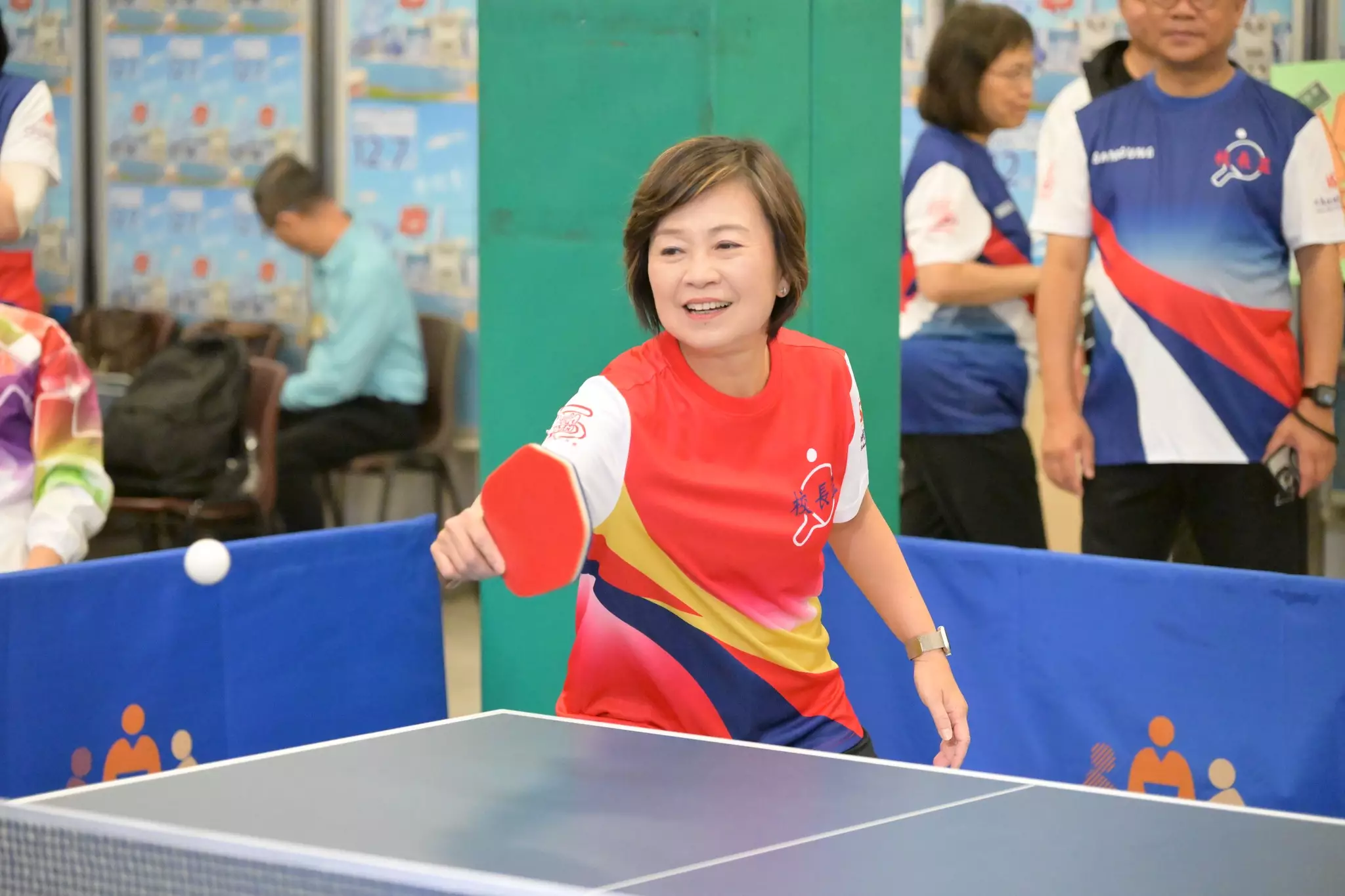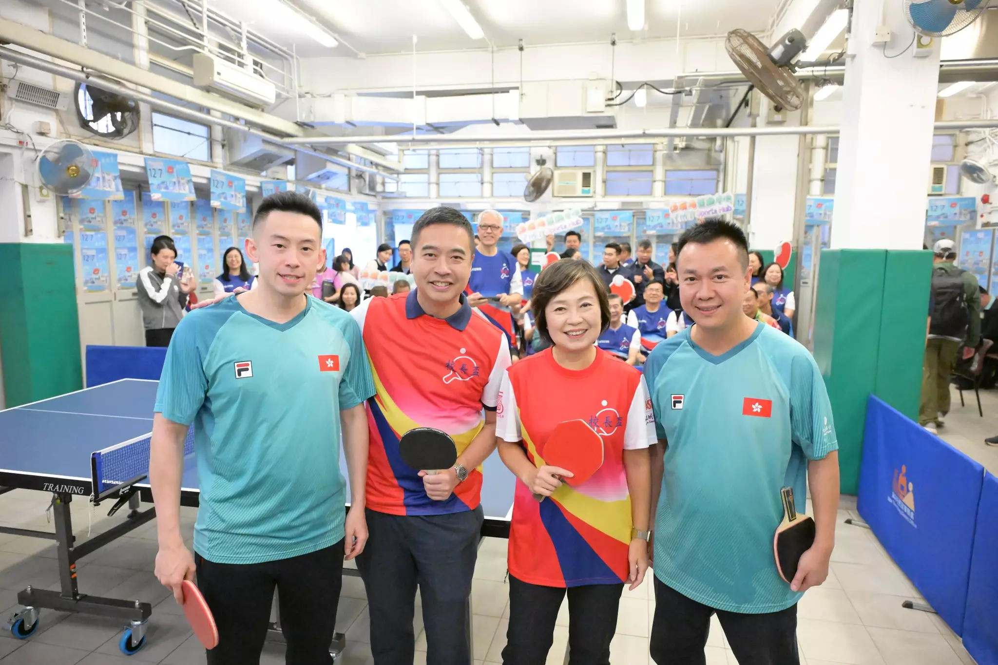 2.同場上演九龍校長盃乒乓球賽。除咗上述四位嘉賓,乒總總教練李靜、港隊球員黃鎮廷及九龍地域校長聯會兼油尖旺區校長會主席梁冠芬都有落場。