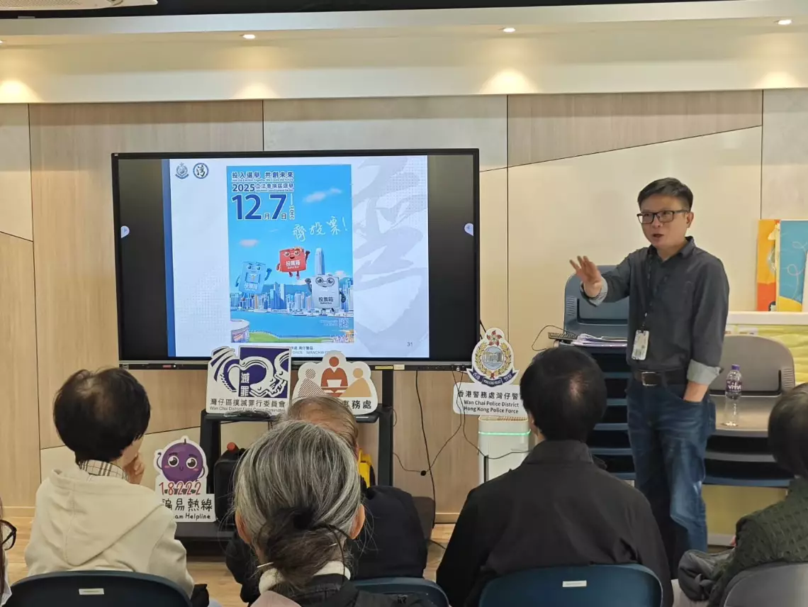 昨日(11月25日),灣仔警區應邀到浸信會愛群道社區服務中心舉行防騙講座,分享各類騙案的真實個案,並提供實用防騙建議,以增強老友記的防騙意識。透過互動問答環節,有助進一步加深參加者的防騙知識。