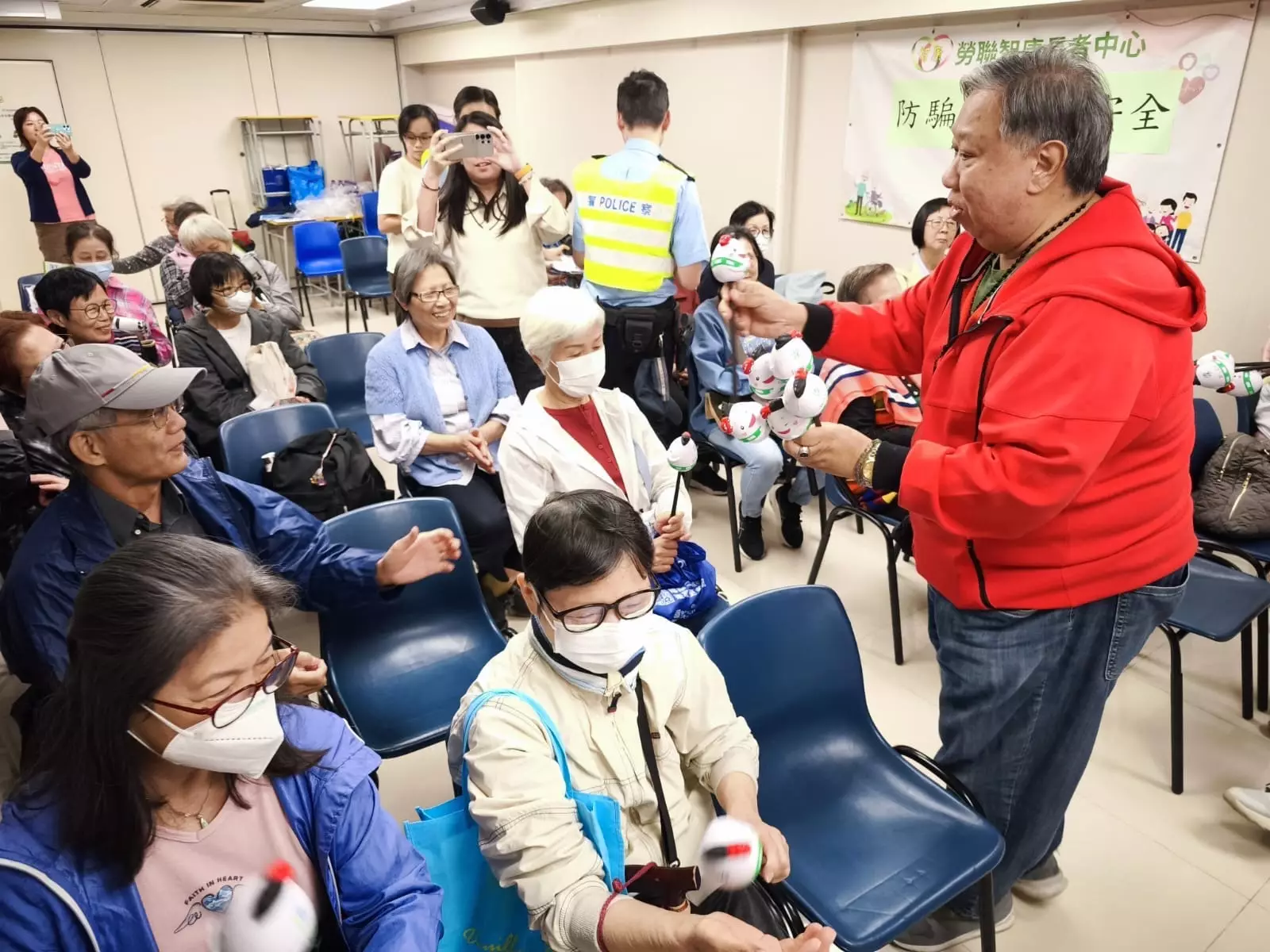 今日(26日),深水埗區耆樂警訊聯同深水埗區道路安全運動委員會副主席麥慶昌先生 、西九龍交通部及西九龍防止罪案辦公室等人員 來到勞聯智康長者中心 舉辦專題講座,向老友記 傳遞道路安全及防騙知識,提升大家的自我保護意識 。 無論是出行還是日常生活,都要時刻遵守交通規則 ,確保自身與其他道路使用者安全,同時亦要認清最新騙案手法,提高警覺,以防受騙。 深水埗警區溫馨提示: 12月7日為第八屆立法會選舉投票日,誠邀大家齊齊「投入選舉、共創未來」,踴躍投票 。