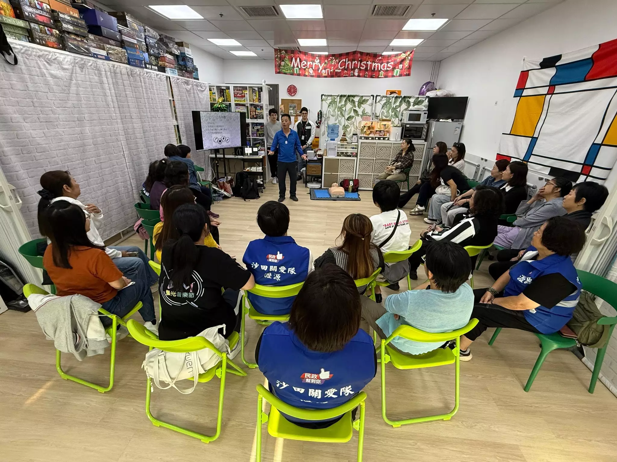 沙田區瀝源小區關愛隊應地區康健站邀請,為成員及義工專門舉辦急救培訓班。課程聚焦實用急救技能,重點講解並實操心肺復甦法與 AED 設備使用,幫助學員快速掌握緊急情況下的救助要領。
