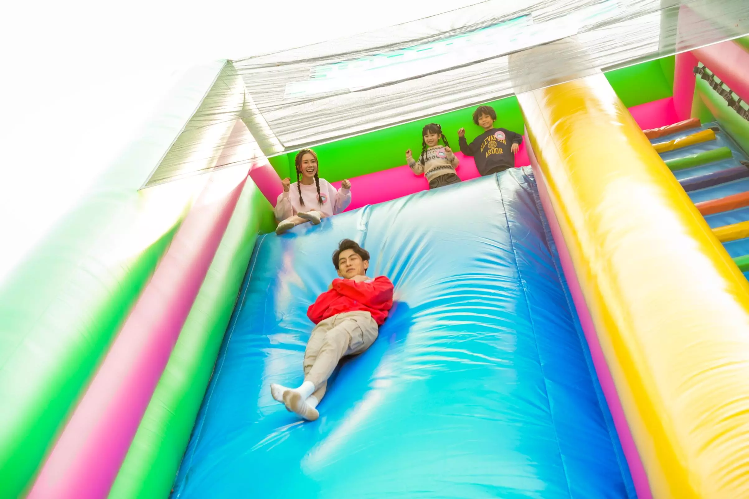 - 4個超巨型充氣遊樂區包括16,000平方呎的全球最大充氣城堡、超過150米長的障礙賽道The Giant巨無霸挑戰場、運動迷必玩的巨型運動場Sport Slam體育狂熱,以及充滿神秘感的太空主題airSPACE Pink Alien外星人堡壘。