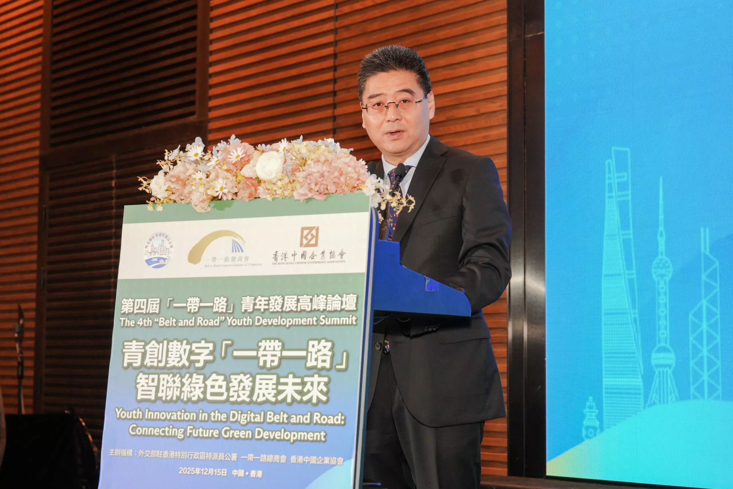 由一帶一路總商會、外交部駐香港特派員公署、香港中國企業協會聯合主辦的第四屆「一帶一路」青年發展高峰論壇2025年12月15日在香港海洋公園萬豪酒店成功舉辦。沿線國家駐港領事、國際組織和外國商會代表、一帶一路青聯網代表、一帶一路總商會會員、香港中企協會員,和來自汶萊、新加坡、老撾、印尼、越南、菲律賓、東帝汶、緬甸等一帶一路國家的青商代表,及香港政協青年聯會、香港科技青年聯合會、香港華菁會、深圳前海e站通、香港江蘇青年總會等三十三家協辦機構代表,共400多名青年代表出席了論壇。