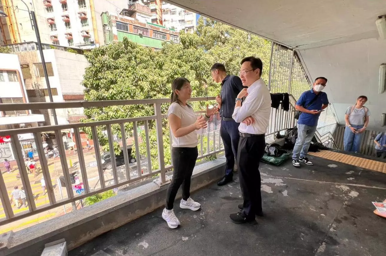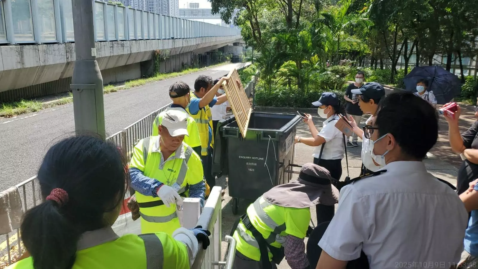 區議員鍾澤暉在場觀察以便向居民報告,民政處政務職系冬季實習生Cynthia都有到場。
