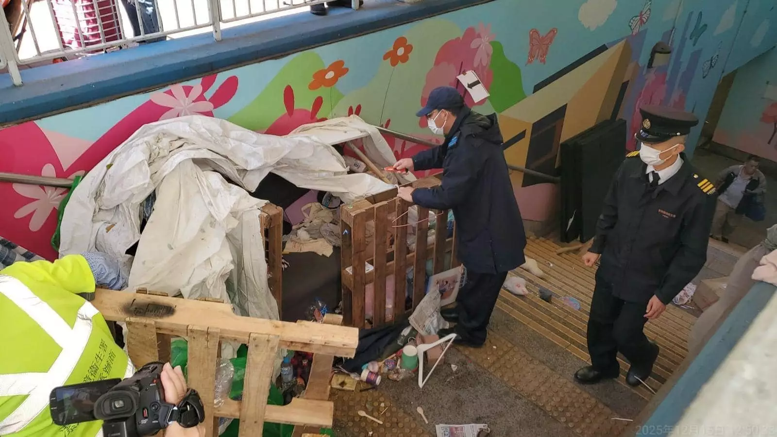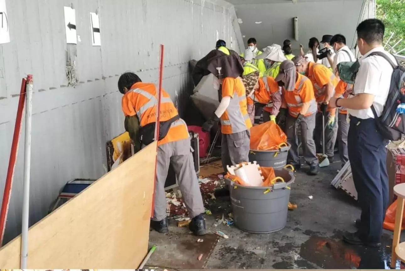 油尖旺民政處昨日(15/12)再次統籌跨部門行動,今年第三次清理櫻桃街行人隧道雜物,回應區議員及社區意見。