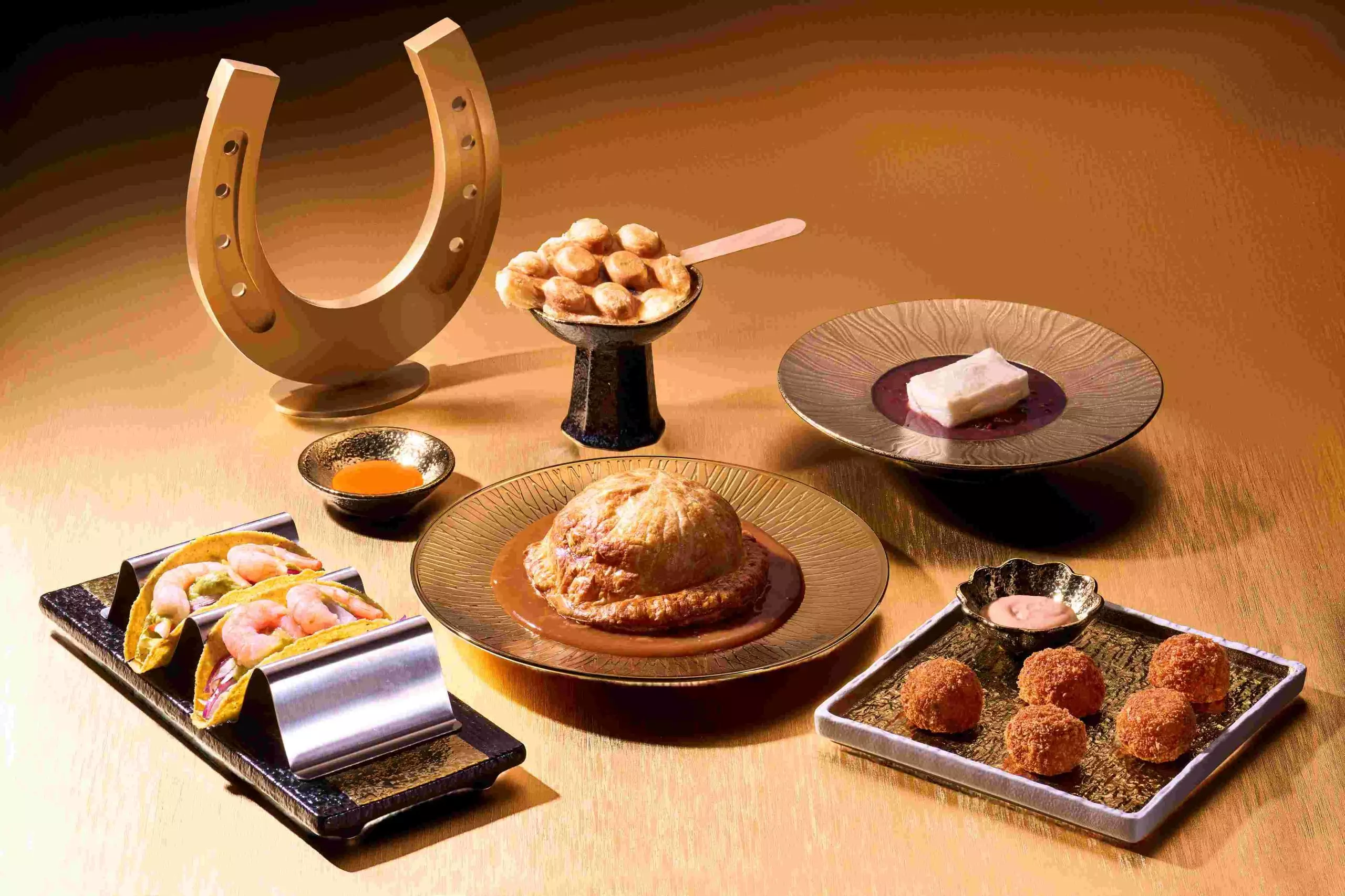 沙田馬場將於元旦當天大派入場禮物1!觀眾於下午3時30分或之前入場,即可免費獲贈指定「好運手提袋」乙個1,讓你隨身攜帶滿滿福氣,「袋」走全年好運。此外,今年將推出「好運由此起問答挑戰 」2及「沙田馬場日日賞」3有獎問答遊戲,成功挑戰分別有機會獲得指定冠軍名駒收藏筆2及指定「嘉應高昇」珍藏紀念鑲畫一幅3,為你的元旦增添彩頭!想要福氣加持?歡迎到「馬場有禮」選購多款主題商品,其中特別推薦「999.9黃金工藝精品金章幸運符」,寓意守護好運、吉祥如意!大會當天亦特意準備了一系列餐飲美饌,讓你一邊享用美食,一邊投入緊張刺激的賽事,全日福氣滿滿,為新一年展開美好序幕!