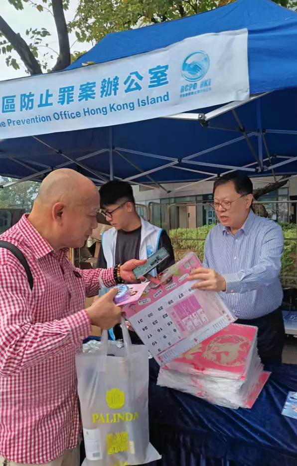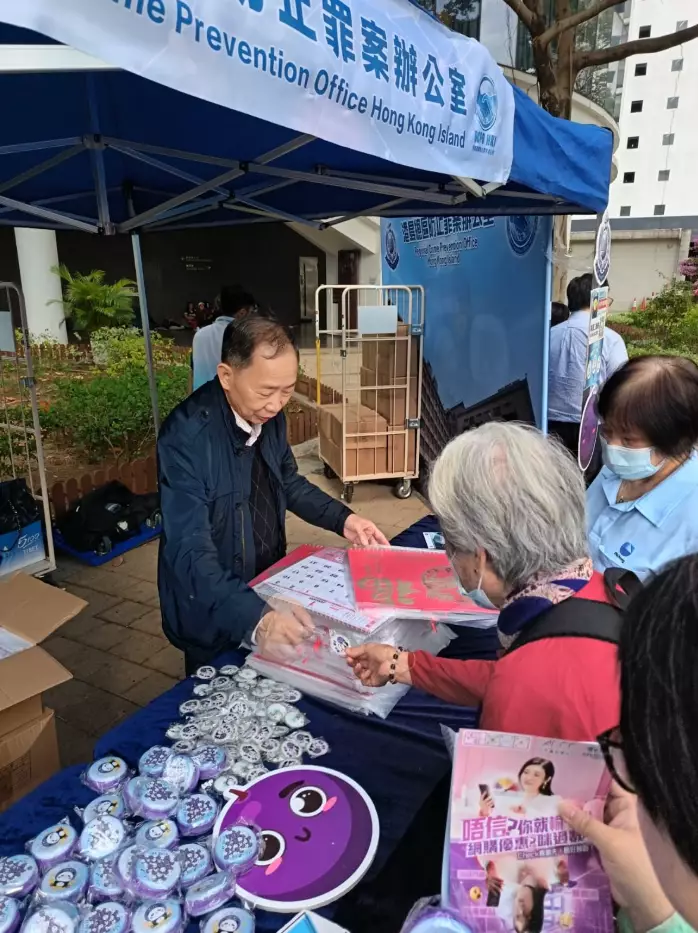 連結已複製! 12月18日,港島總區防止罪案辦公室在維多利亞公園舉行的第59屆工展會期間,舉辦防罪宣傳活動。現場設置互動攤位,向參觀市民普及防罪知識,吸引大批民眾踴躍參與。 活動現場,工作人員向來往市民免費派發防騙月曆及各類實用紀念品,同時詳細講解常見騙案的防範要點。現場反應熱烈,眾多市民主動駐足諮詢,其中逾千名市民即場下載了「防騙視伏器」,有效強化了公眾對騙案的防範意識。 值得一提的是,此次防罪宣傳活動得到了「天使長行動委員會」多位會長的親臨支持。會長們來到活動現場,與市民近距離互動交流,一同推動防罪訊息的傳播。 資料來源:港島總區防止罪案辦公室FB