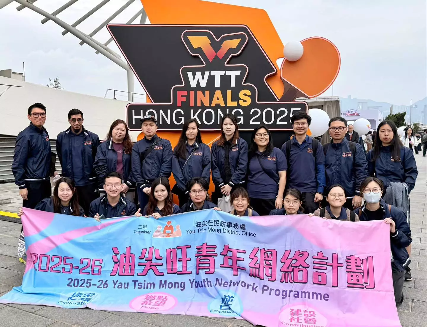 2.上星期喺紅館舉辦嘅 WTT 香港總決賽 2025 ,感謝中國香港乒乓總會,讓油尖旺民政處安排青年網絡成員欣賞世界級賽事 。