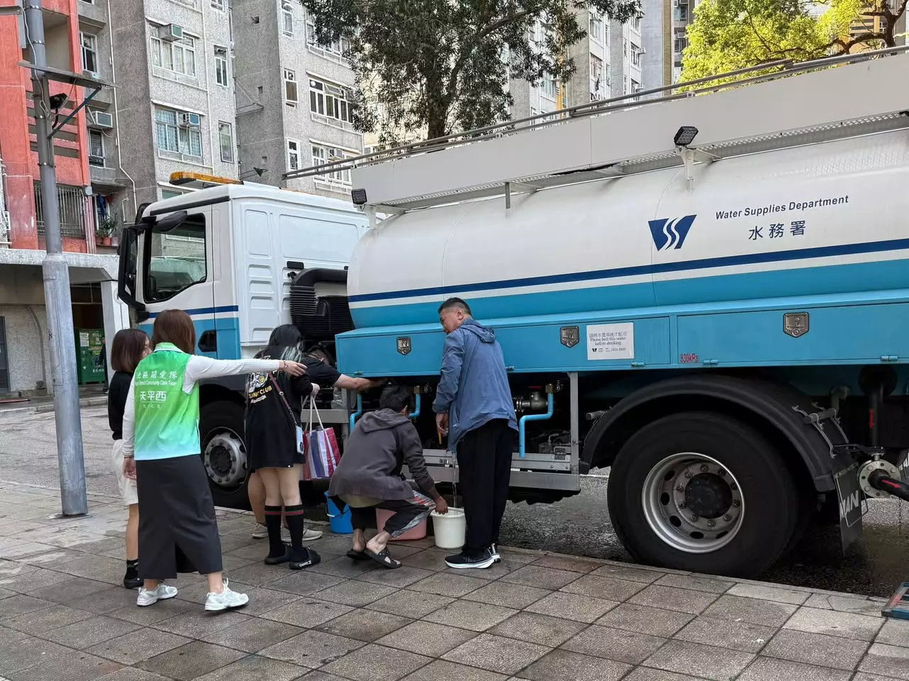 目前,部分地區的食水供應已逐步恢復。根據水務署的資料,因應水管維修工程,安盛苑、天朗樓、天美樓、天喜樓、天明樓及天平商場的食水供應將受影響。民政處已聯絡水務署,在天平邨多處安排水車及大水缸,為居民提供備用食水。關愛隊亦在場協助居民排隊取水。
