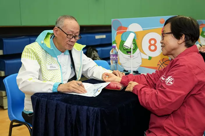 今日活動內容多姿多彩,包括由40多名中醫師和推拿師提供免費中醫內科和骨科諮詢服務;耆樂警訊中央諮詢委員會委員許世全教授及「2025年度耆樂大使」Hey Brother帶領全場進行「長者平衡防跌健康操」;衞生署職員主持有關情緒管理的講座;場內並設有虛擬實境遊戲讓長者透過體感技術進行有趣的體育活動,以及以國家安全為主題的互動攤位,加深長者對國家安全的認識。