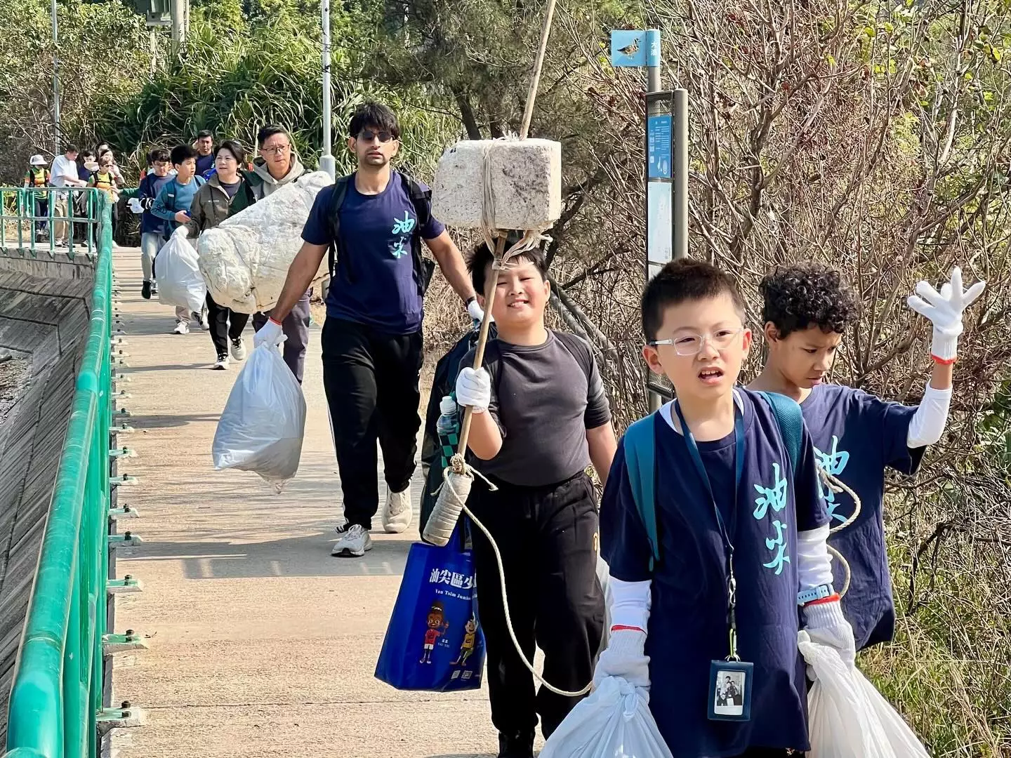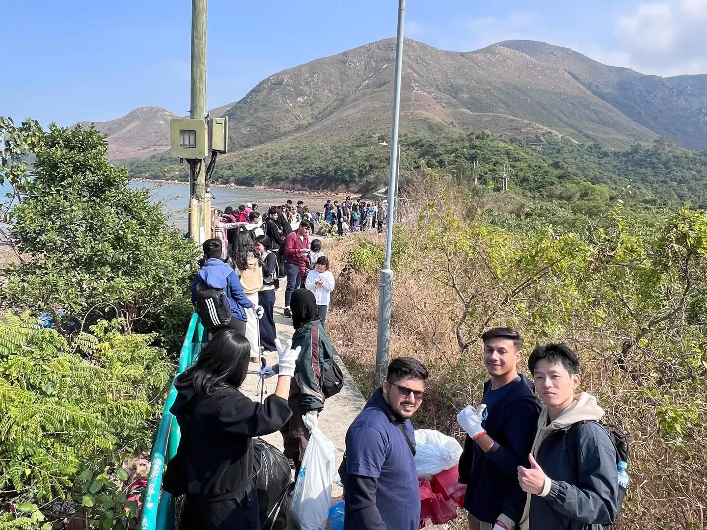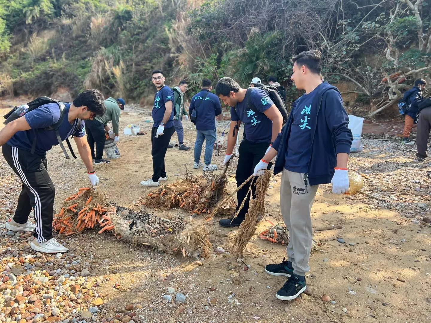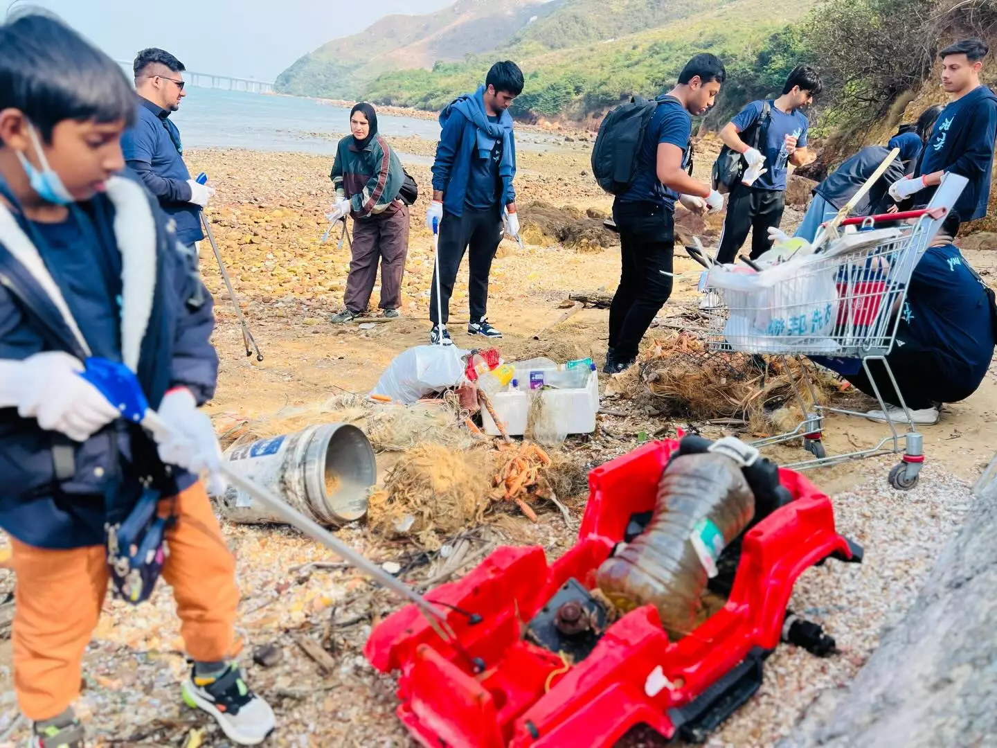 當日陽光燦爛,志願者一早齊集尖沙咀乘旅遊巴出發,抵達大澳寶珠潭後,立刻分組行動。大家手持垃圾夾、環保袋,沿沙灘細緻清理膠樽、泡沫、廢網等各類海洋垃圾,為守護自然環境盡一份心力。