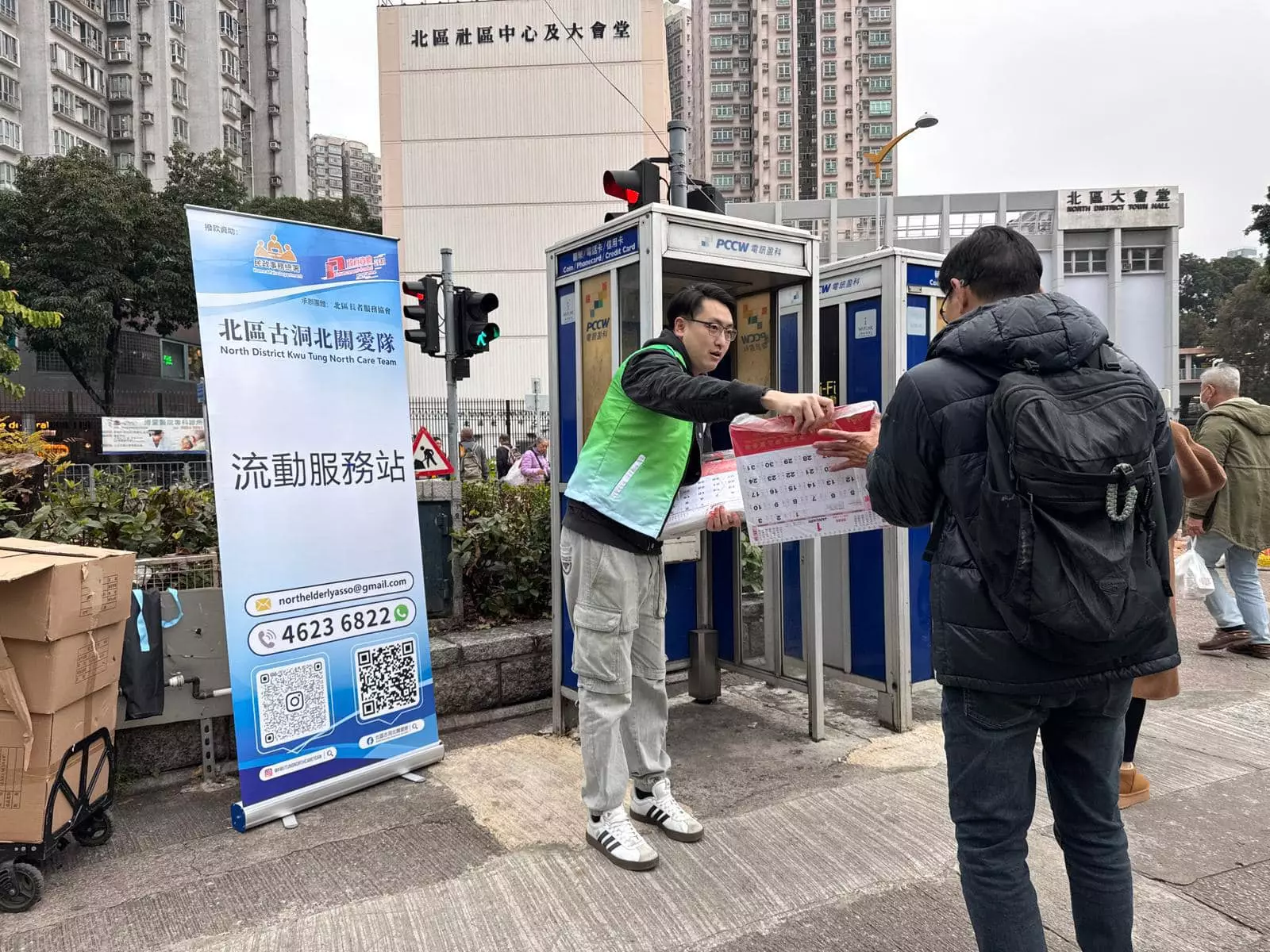 走入古洞北新發展區,關懷安老院舍里嘅 老友記 。小隊同約250位老友記一齊玩遊戲、話家常,細聽佢哋生活嘅點滴同需要。另外,隊員同義工也會穿梭喺上水市區小巴站、古洞及馬草壟一帶,透過擺街站同上門探訪,為村民 送上新年月曆 同利是封 ,並介紹小隊服務。