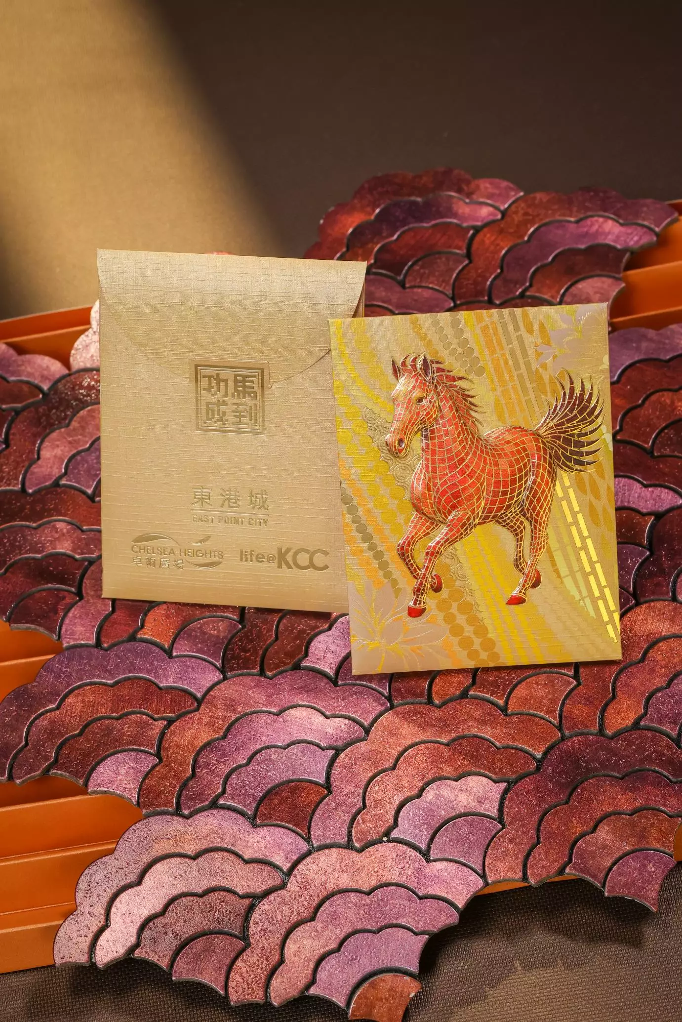 丙午馬年將至,新鴻基地產旗下將軍澳東港城、屯門卓爾廣場及葵興life@KCC攜手誠意推出「千格玲瓏」限量版精緻利是封,以匠心工藝迎春接福。利是封設計靈感源自古典馬賽克鑲嵌藝術,透過千格色塊細緻拼貼,創作出4款祥瑞圖案,包括象徵年年有餘的錦鯉、寄予愛與希望的蜂鳥、寓意富貴騰達的駿馬,以及象徵富貴吉祥的牡丹。利是封設計匠心獨運,採用手感細膩的觸感紙,結合啞色燙金、透明幻彩及精緻雕凸的印刷技術,以傳統中式藝術美學突顯古典馬賽克設計的精緻韻味,為新春佳節添上一抹華麗喜氣。